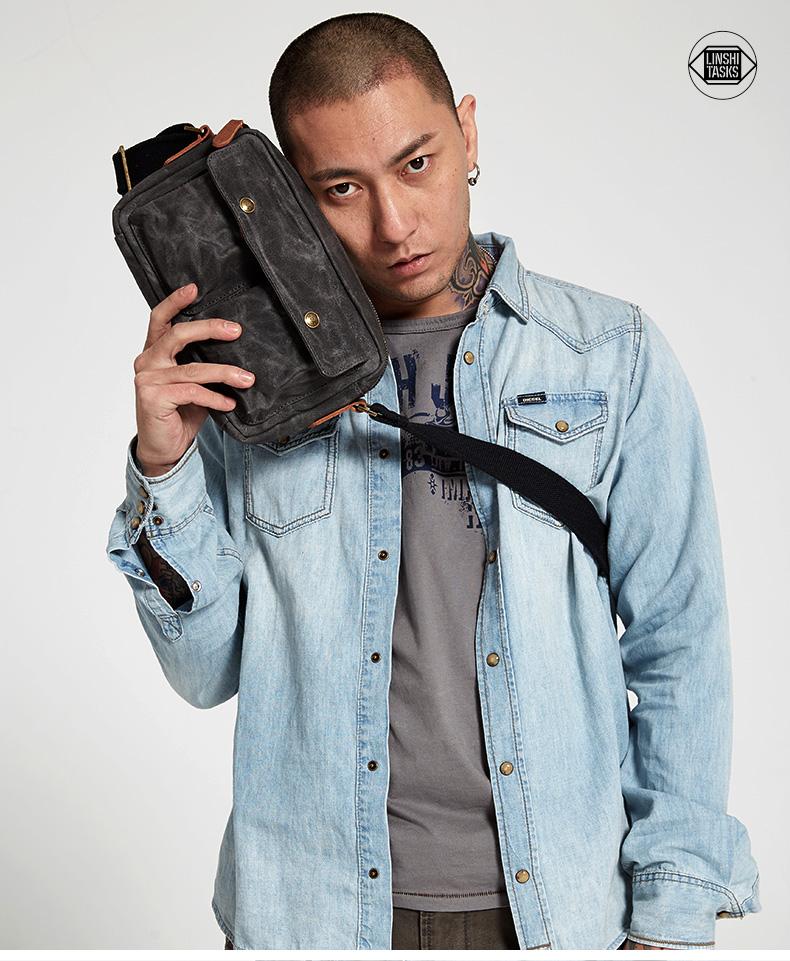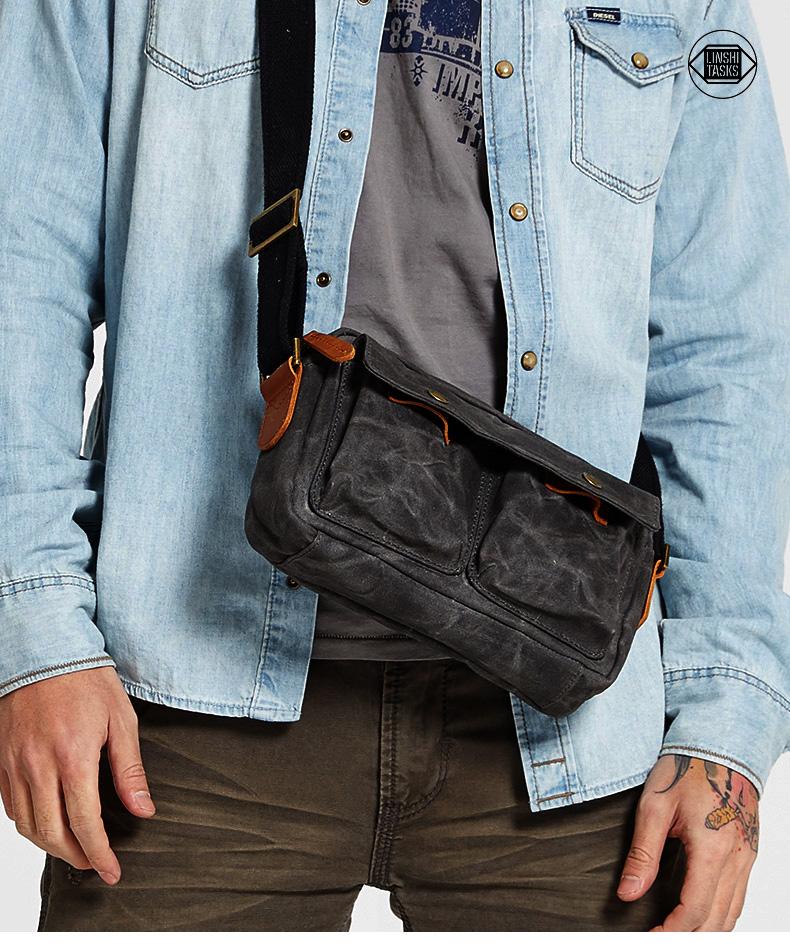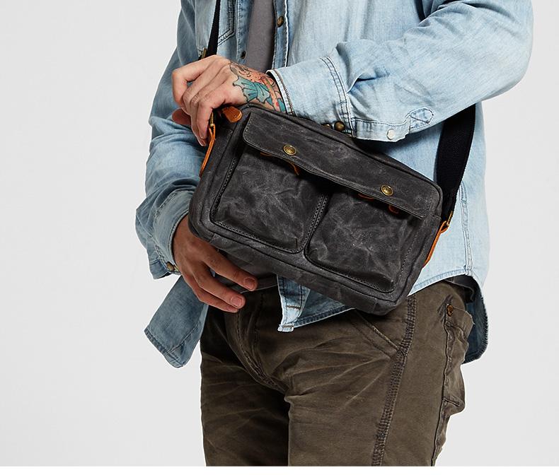 Design: Gray Canvas Mens Casual One Shoulder Backpack Shoulder Bag Messenger Bags Casual Courier Bags for Men