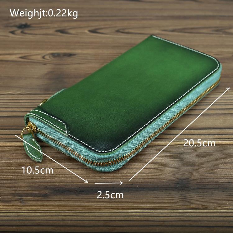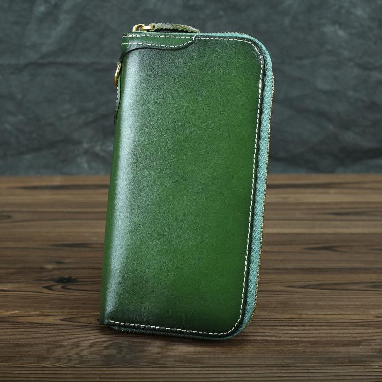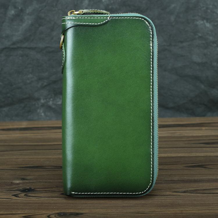 Style: Green Mens Leather Cards Long Wallets Lot of Cards Black Zipper Long Wallet Cards Wallet for Men