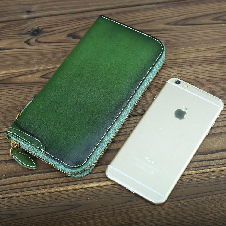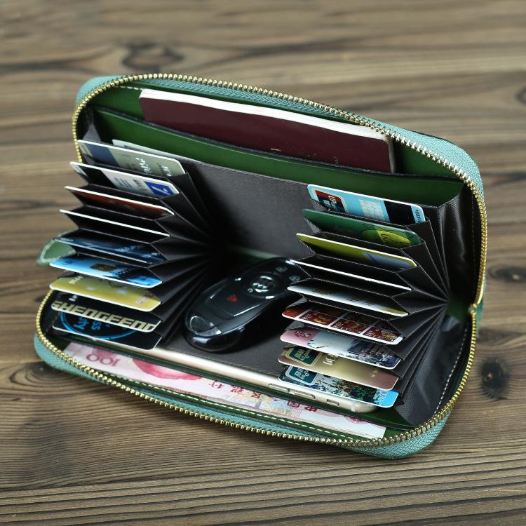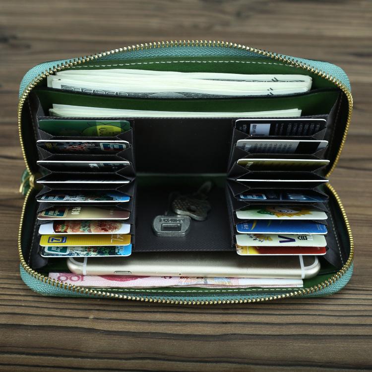 Design: Green Mens Leather Cards Long Wallets Lot of Cards Black Zipper Long Wallet Cards Wallet for Men