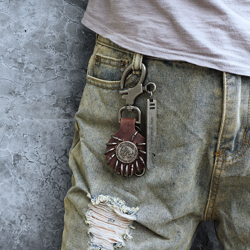 Design: Handmade Biker Trucker Motorcycle Cool Key Ring Keychain Fob Leather Bottle Opener Keychain