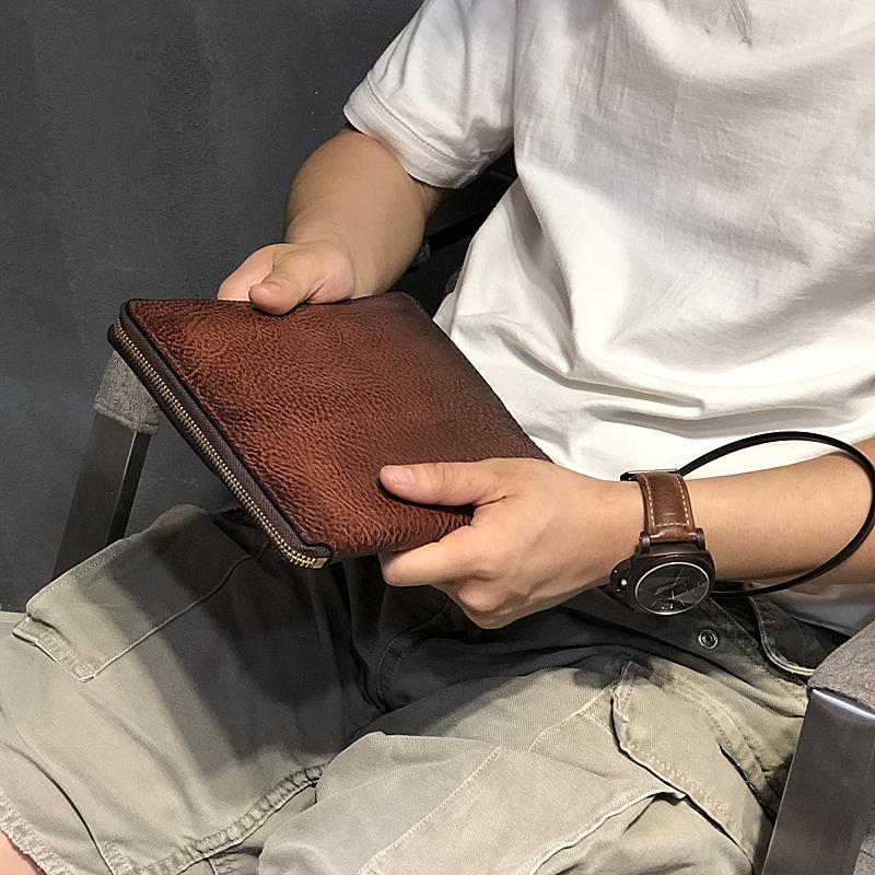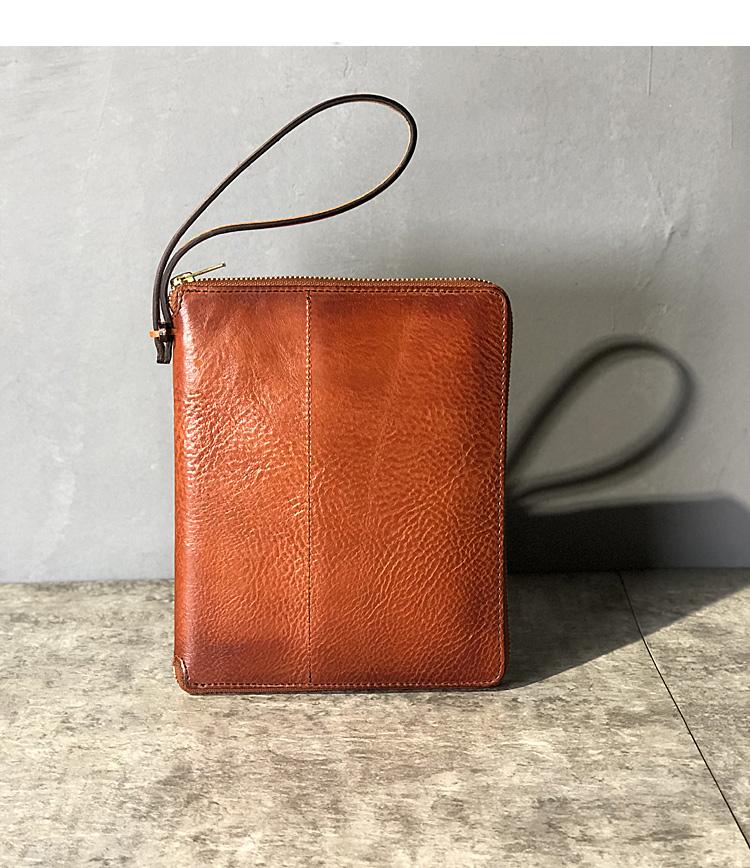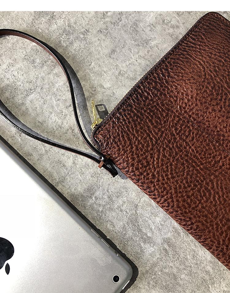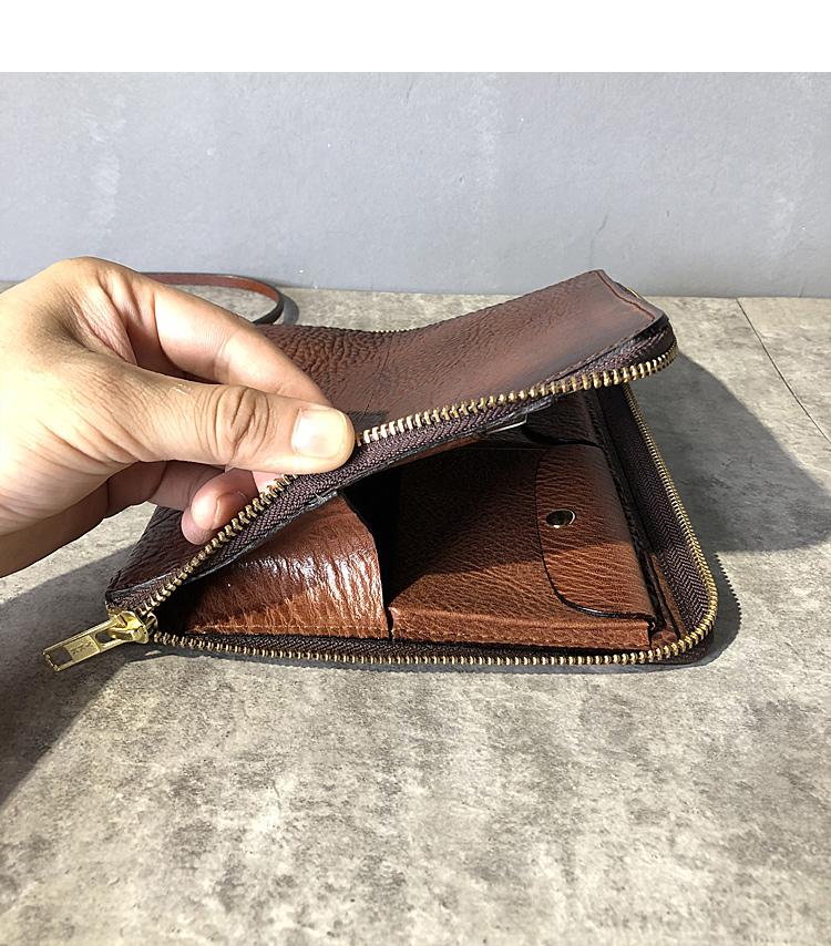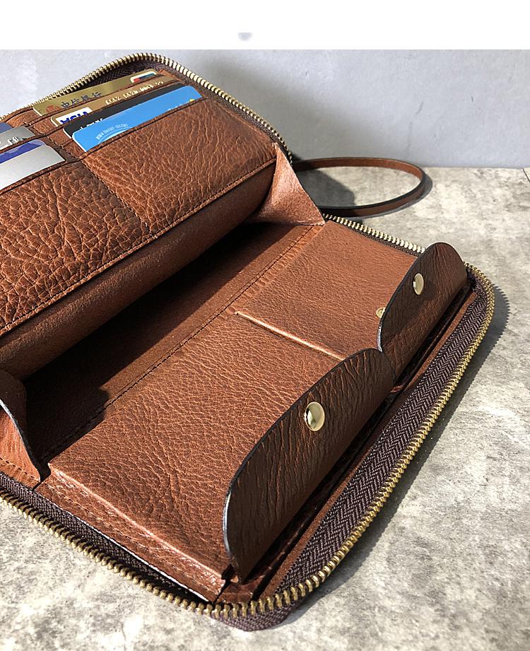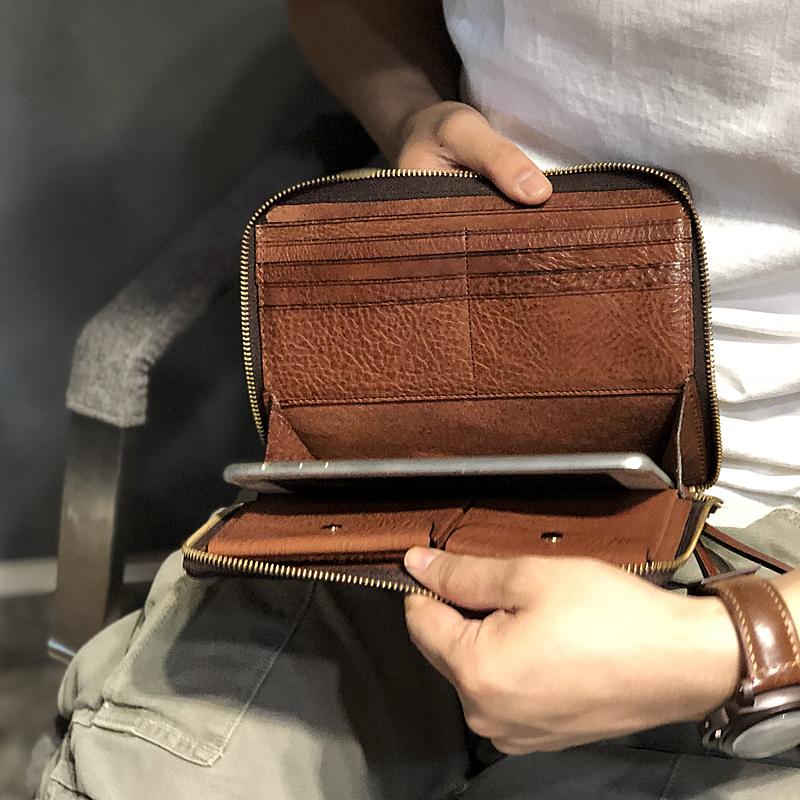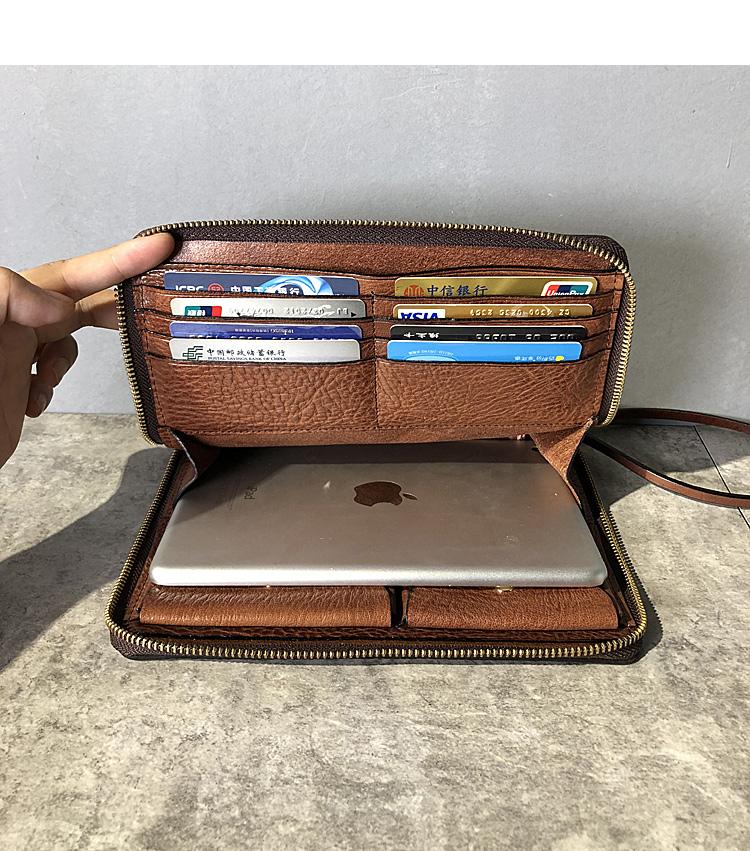 Style: Handmade Black Leather Mens Bifold Long Wallet Brown Multifunction Wallet IPAD Bag Card Holder Clutch Men