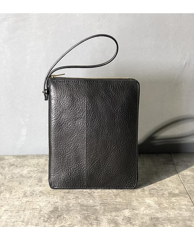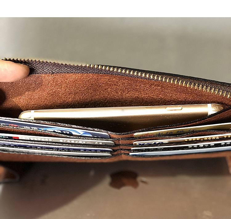 Design: Handmade Black Leather Mens Bifold Long Wallet Brown Multifunction Wallet IPAD Bag Card Holder Clutch Men