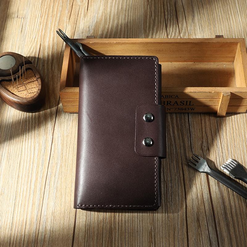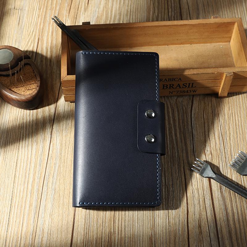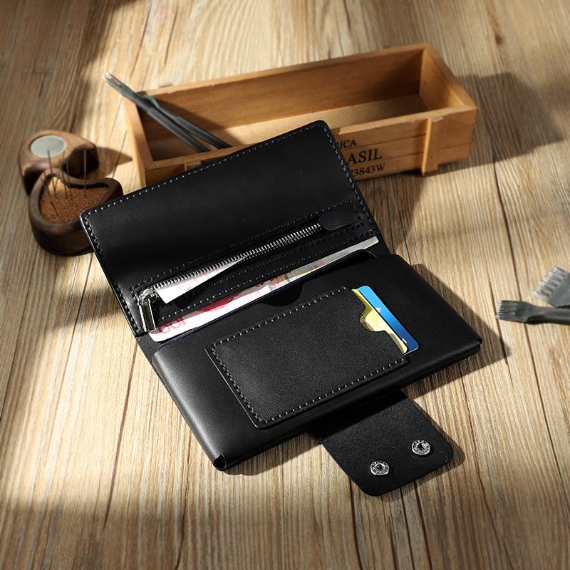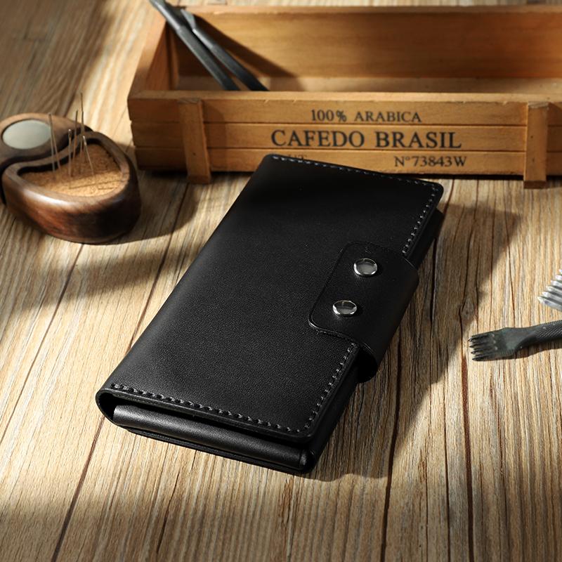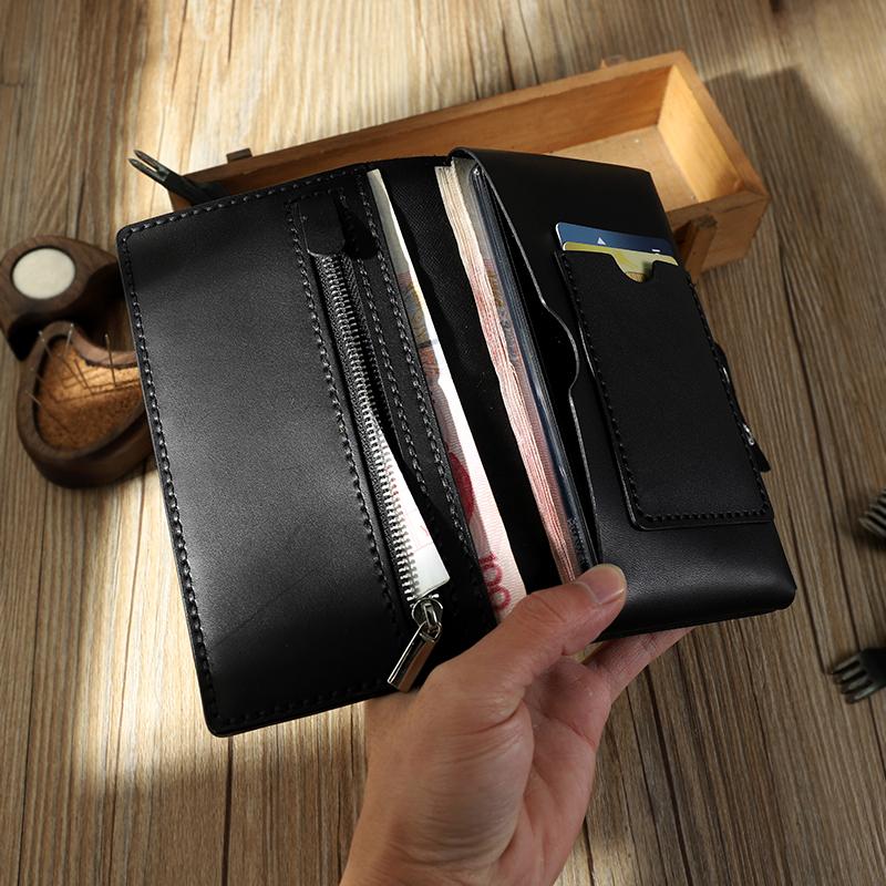 Style: Handmade Black Leather Mens Bifold Long Wallets Personalized Black Checkbook Leather Wallets for Men