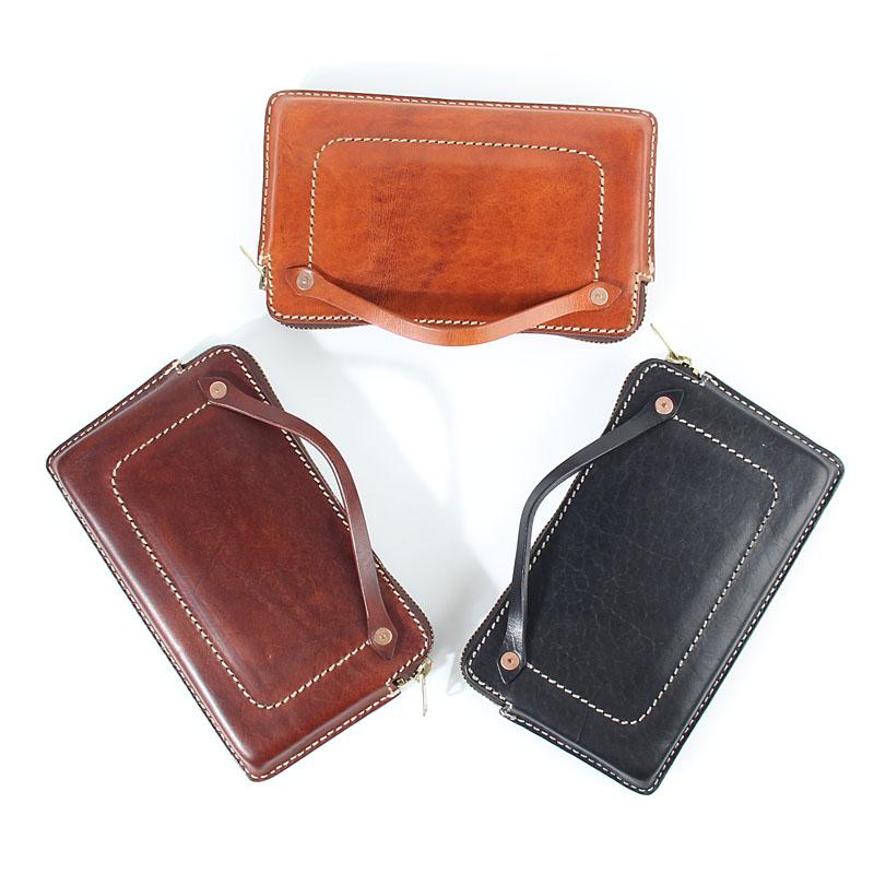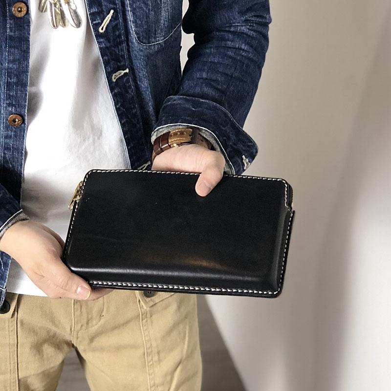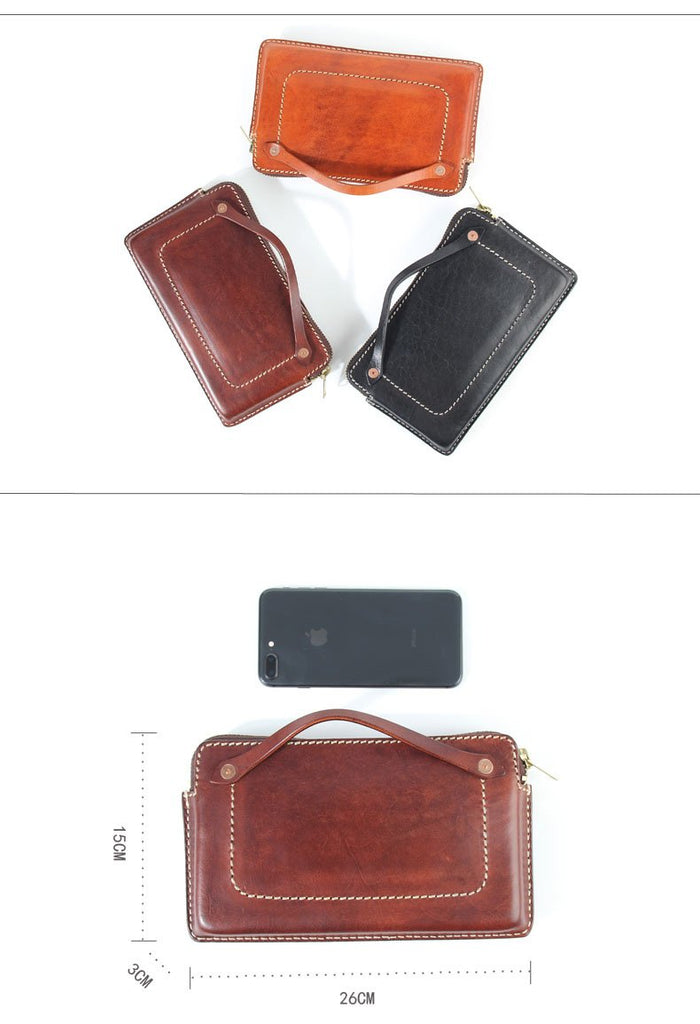 Design: Handmade Black Leather Mens Cool Brown Long Leather Wallet Biker Clutch Wristlet Wallet for Men