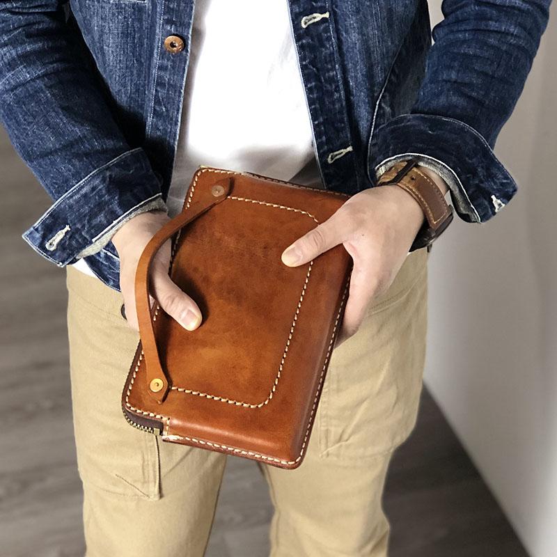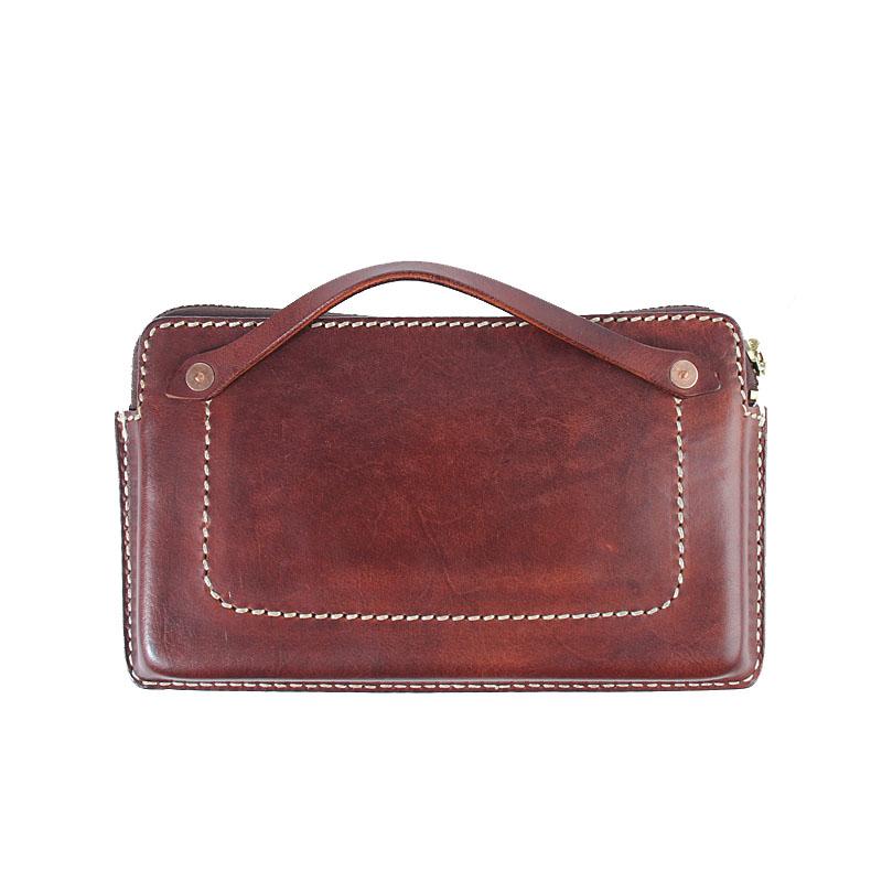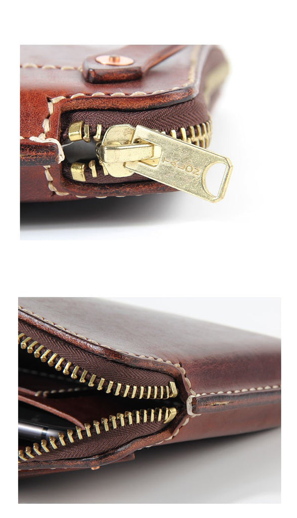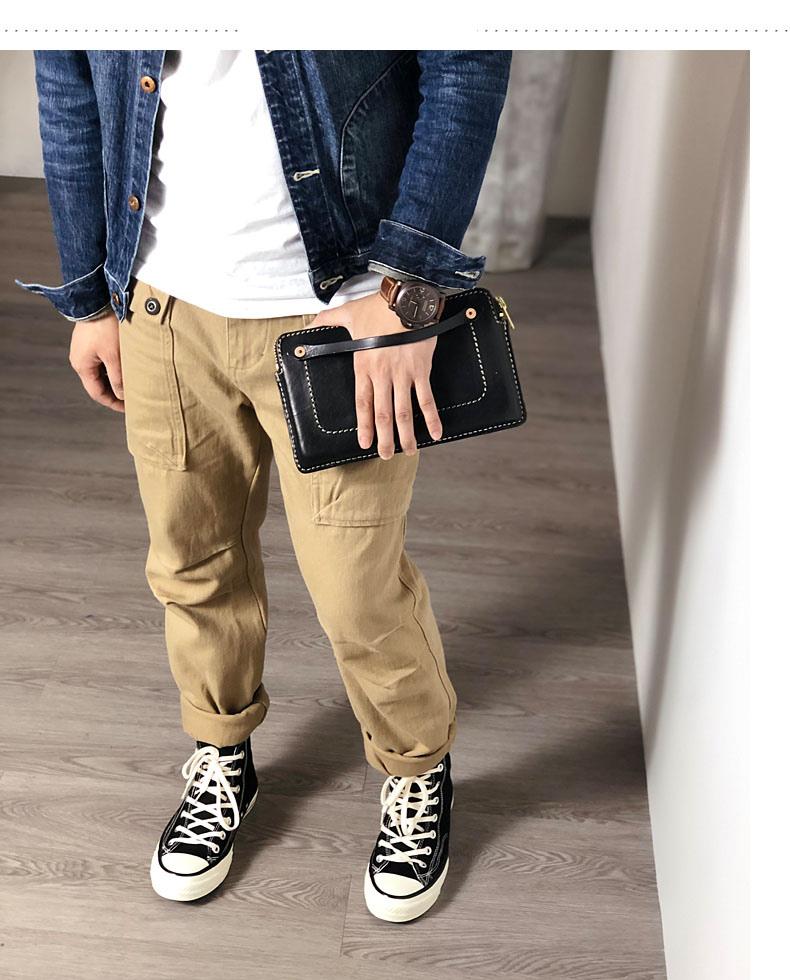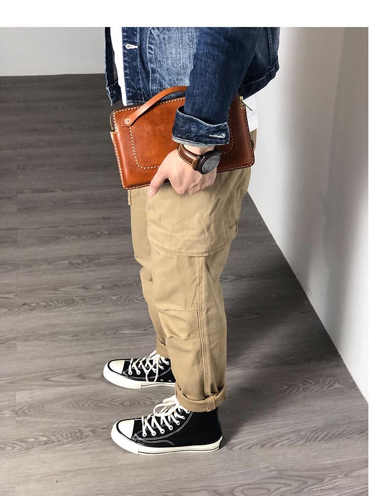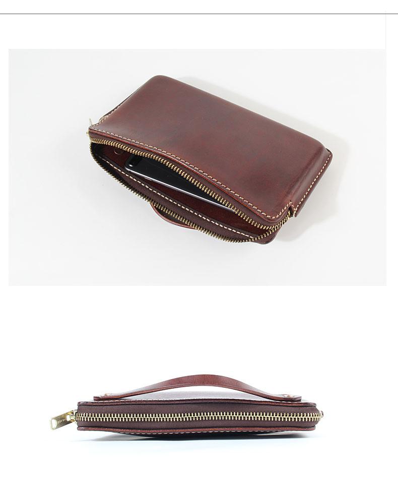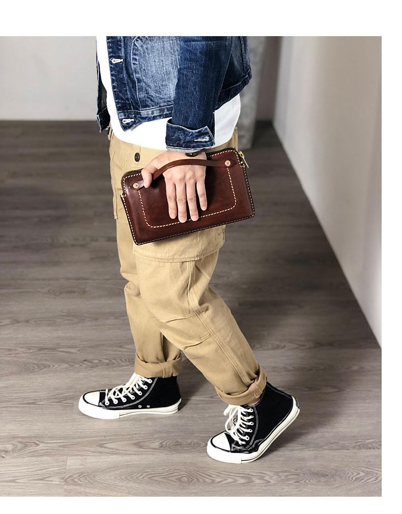 Style: Handmade Black Leather Mens Cool Brown Long Leather Wallet Biker Clutch Wristlet Wallet for Men