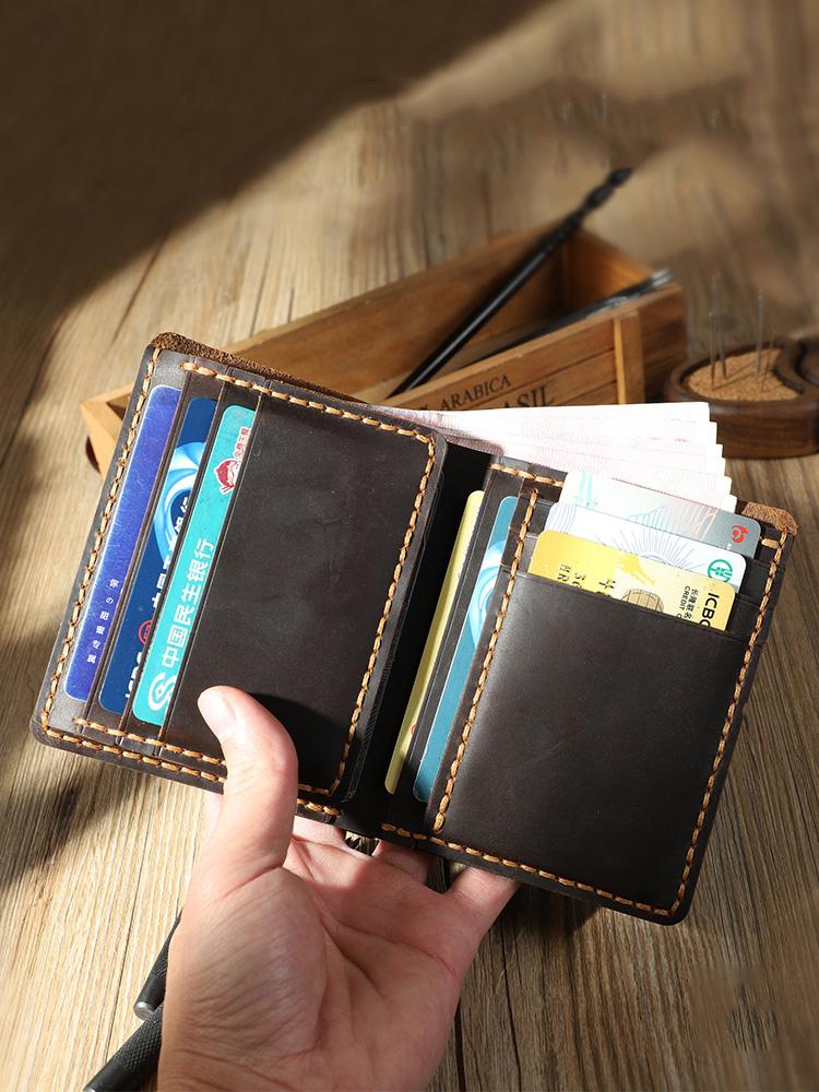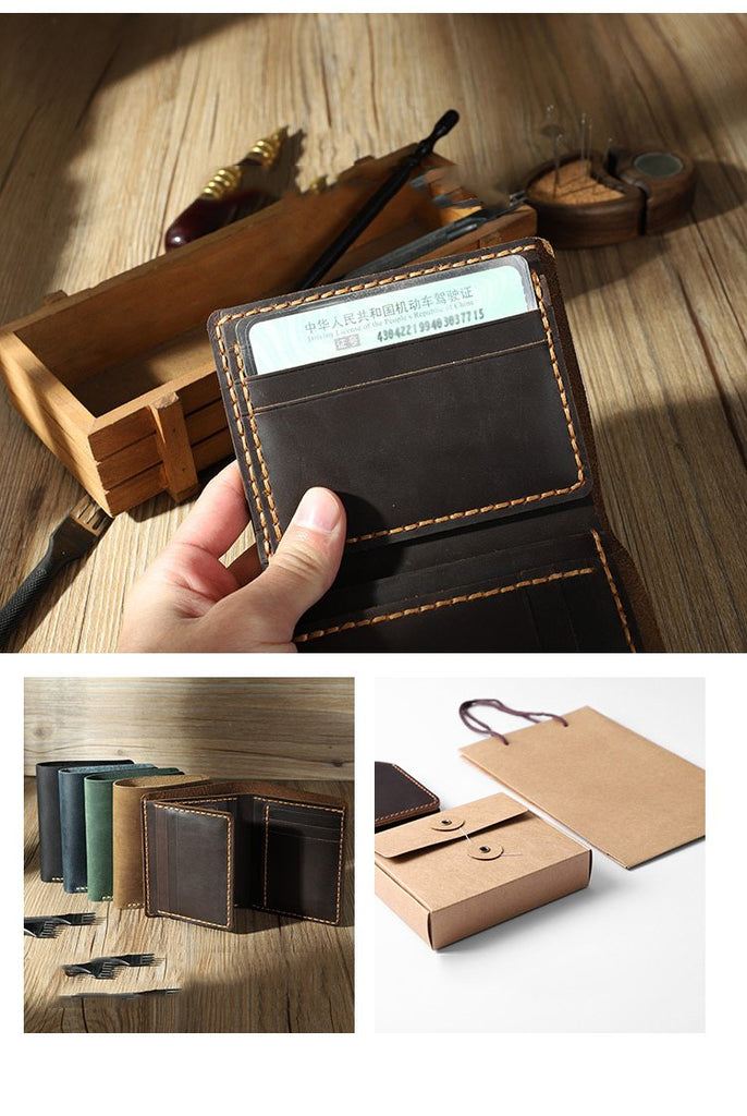 Style: Handmade Coffee Leather Mens Trifold Billfold Personalized Trifold Small Wallets for Men