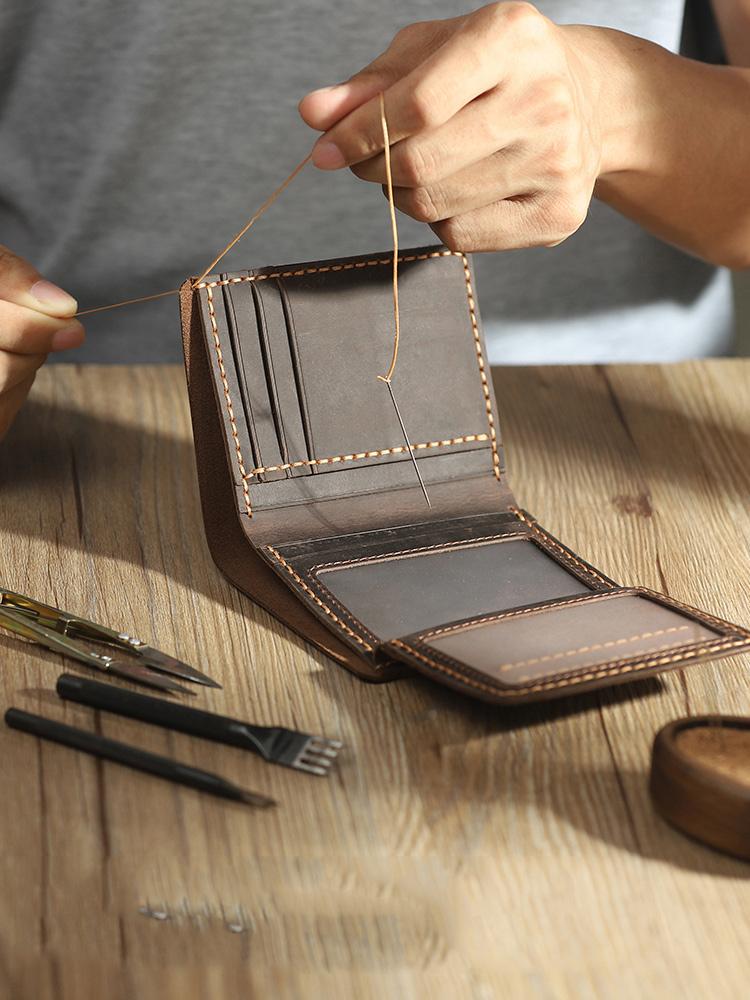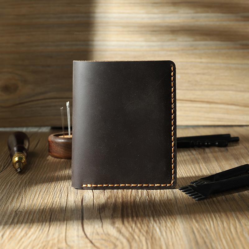 Design: Handmade Coffee Leather Mens Trifold Billfold Personalized Trifold Small Wallets for Men
