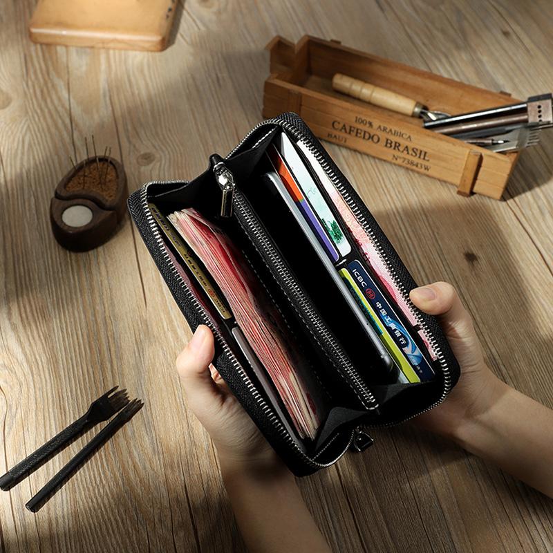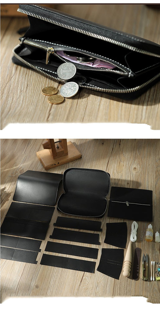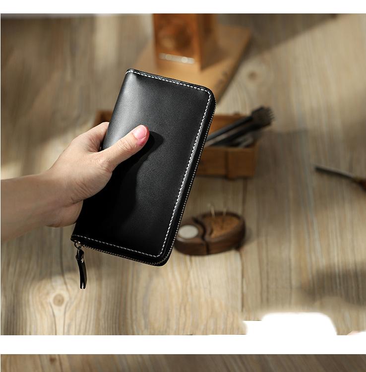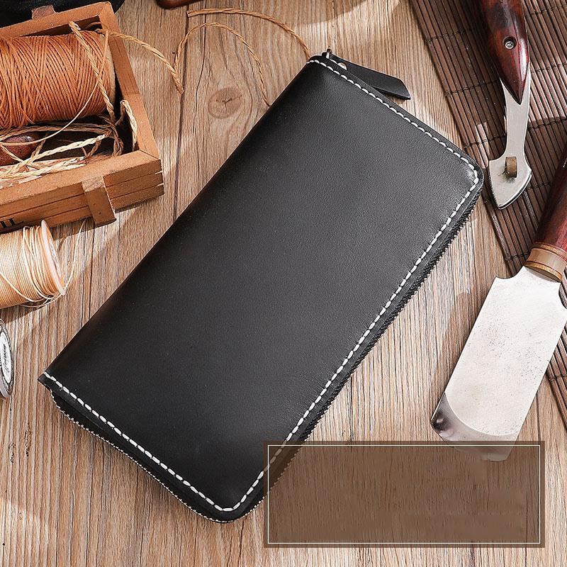 Style: Handmade Black Zipper Mens Clutch Wallet Personalized Black Leather Zipper Clutch for Men
