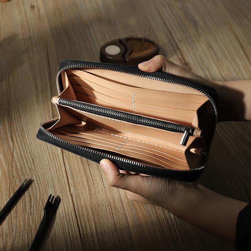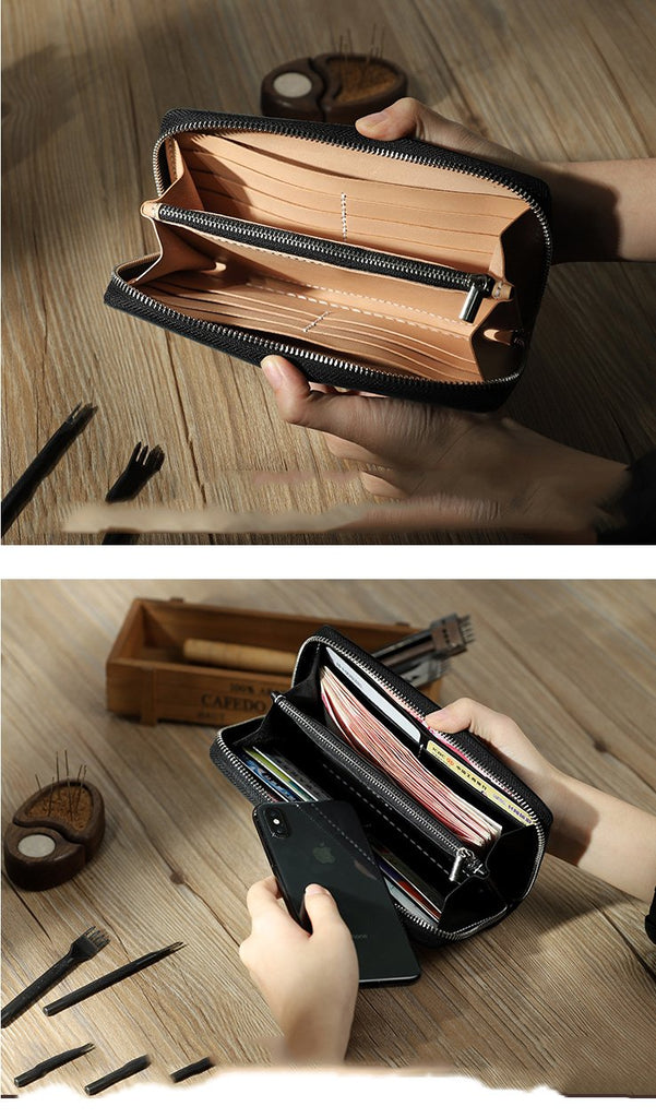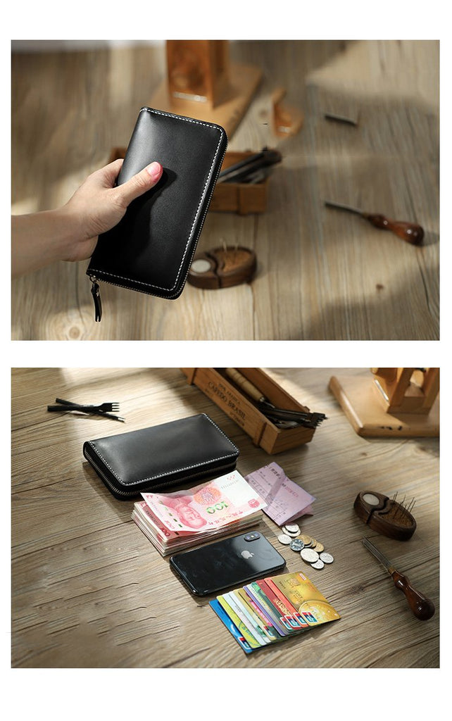 Style: Handmade Black Zipper Mens Clutch Wallet Personalized Black Leather Zipper Clutch for Men