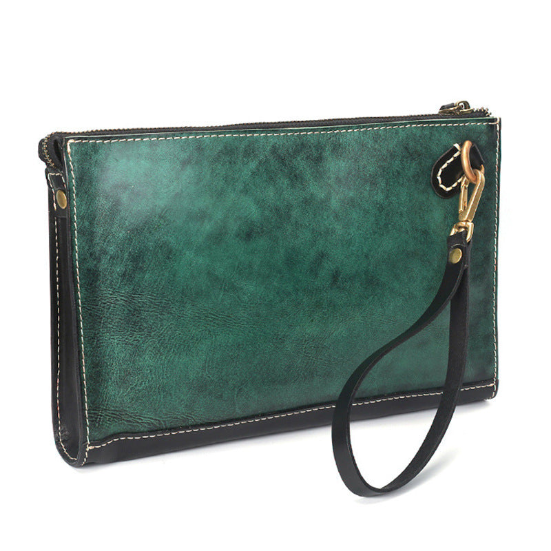 Style: Handmade Leather Clutch Wristlet Bag Wallet Zipper Large Clutch Wristlet Wallet for Men