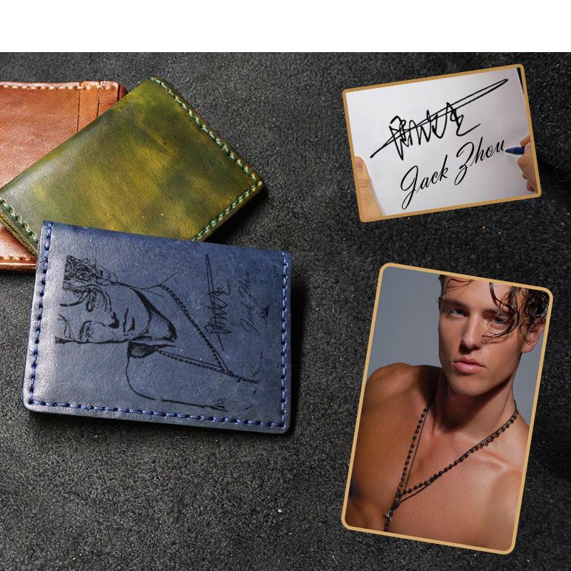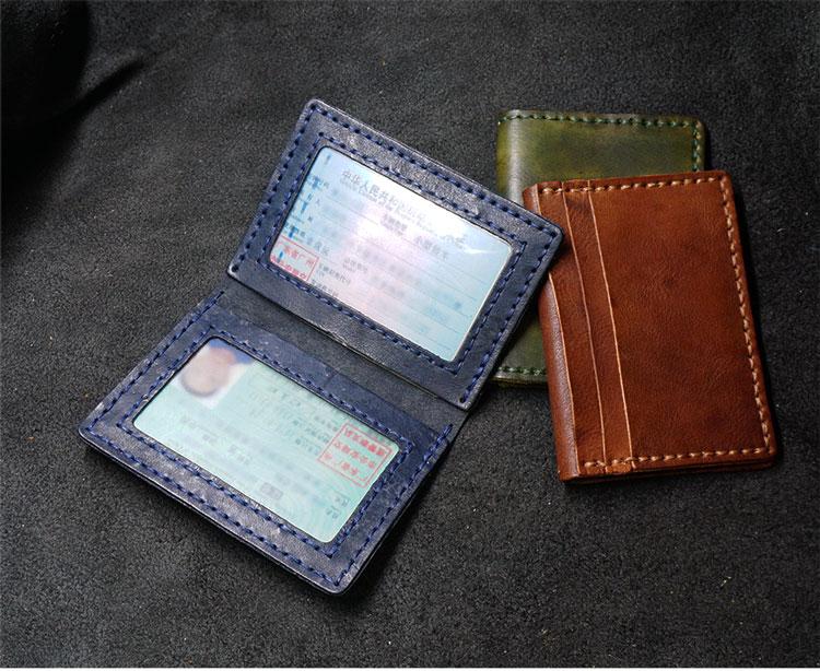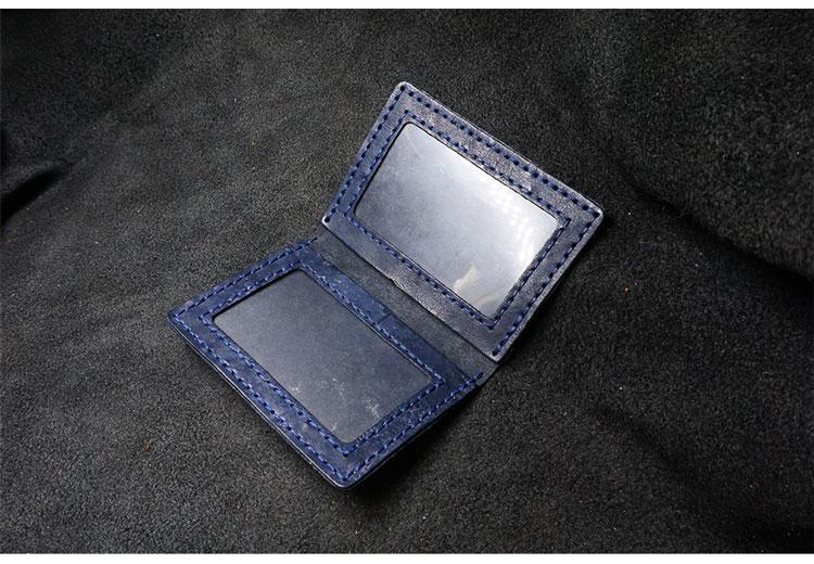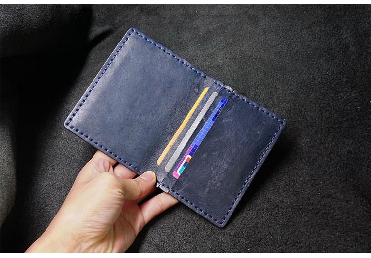 Design: Handmade Blue Leather Mens Slim Card Holders Wallets Slim Bifold Card Wallet for Men