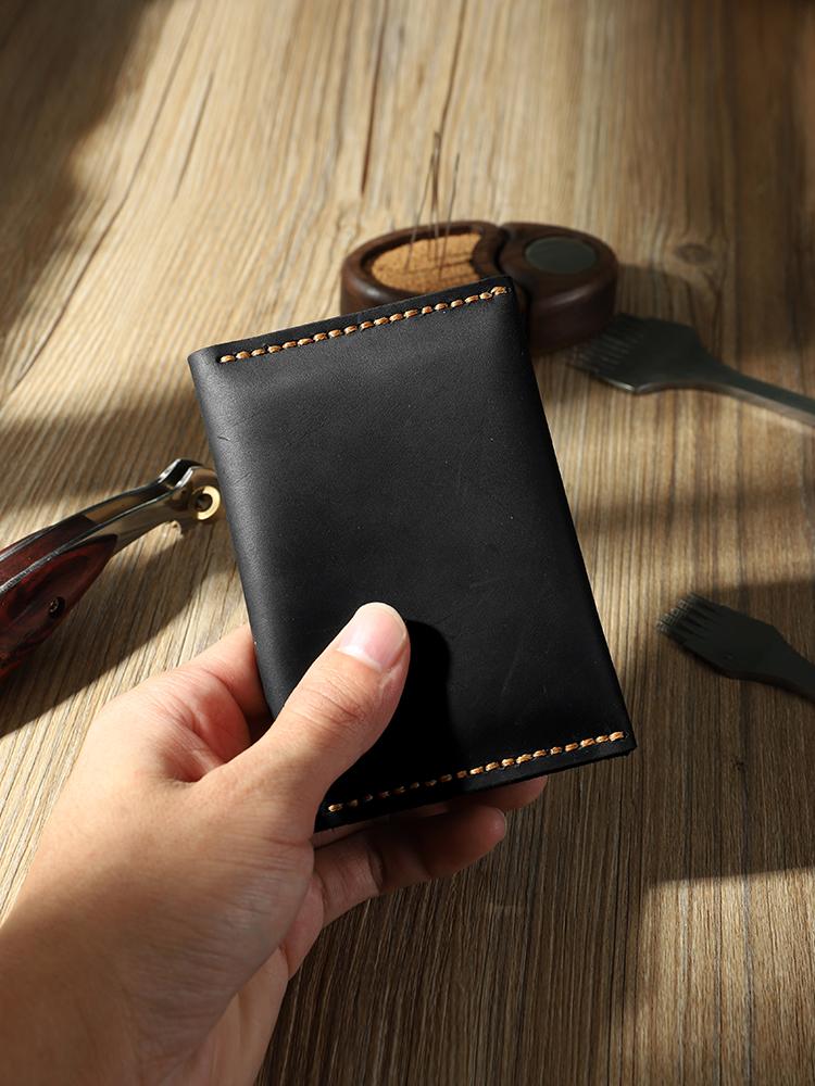 Design: Handmade Blue Leather Mens Small Card Holders Wallet Personalized Bifold Card Wallets for Men