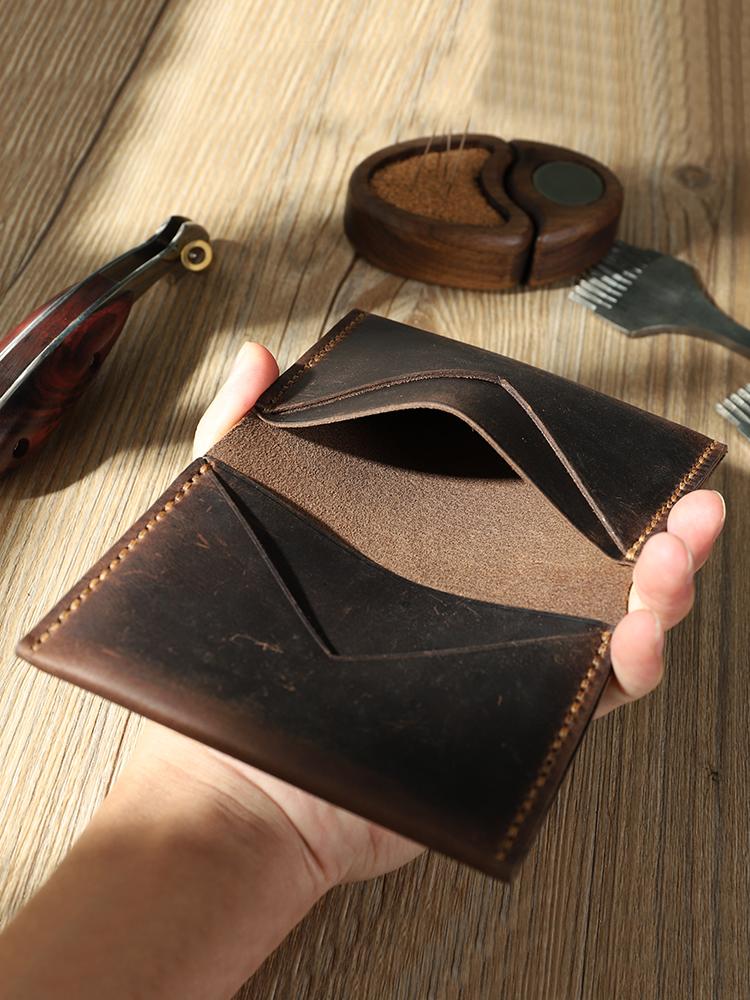 Style: Handmade Blue Leather Mens Small Card Holders Wallet Personalized Bifold Card Wallets for Men