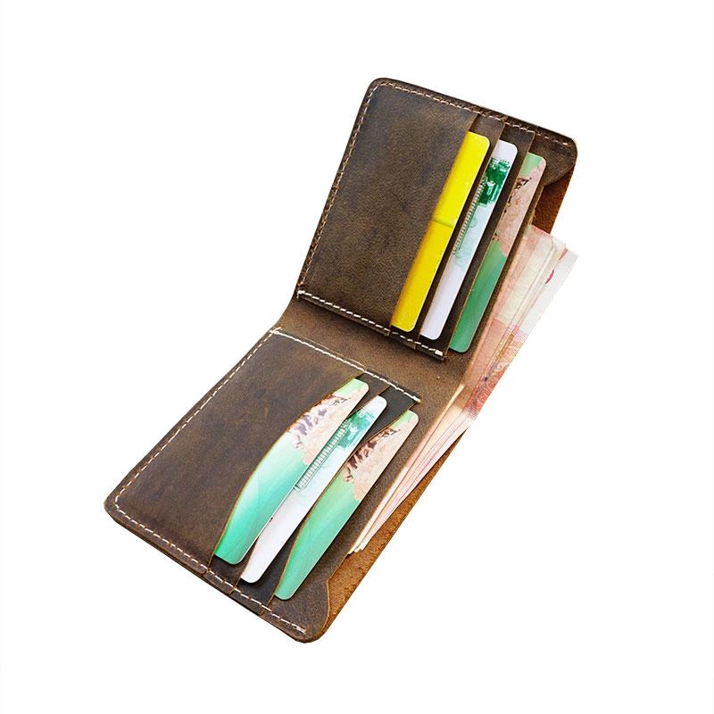 Style: Handmade Brown Leather Mens Billfold Wallets Slim Brown Bifold Small Wallet for Men