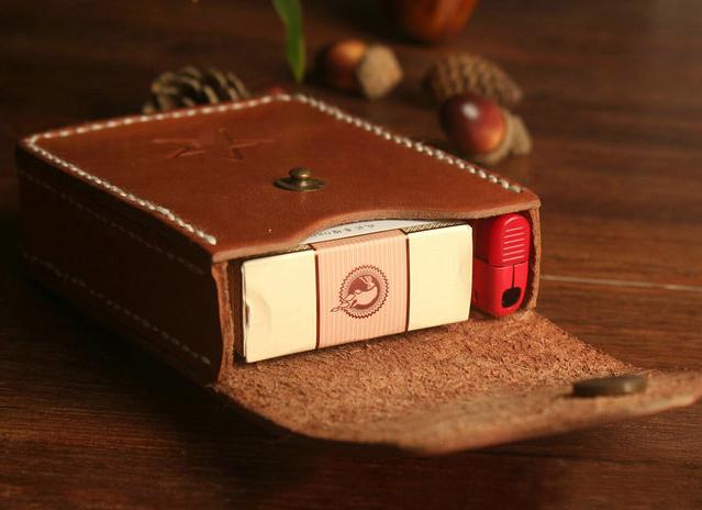 Design: Handmade Brown Leather Mens Cigarette Case Cool Cigarette Holder with Belt Loop for Men