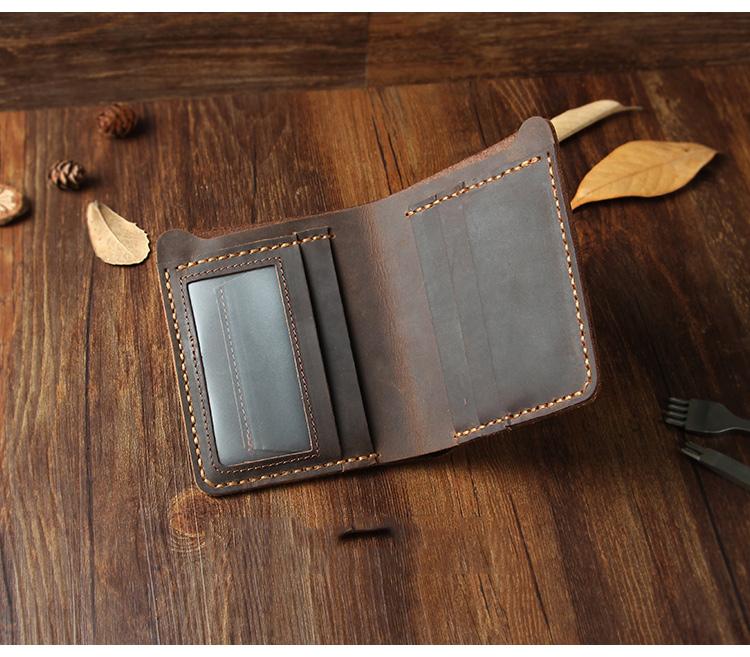 Design: Handmade Coffee Leather Mens Billfold Wallets Personalize Coffee Bifold Small Wallets for Men