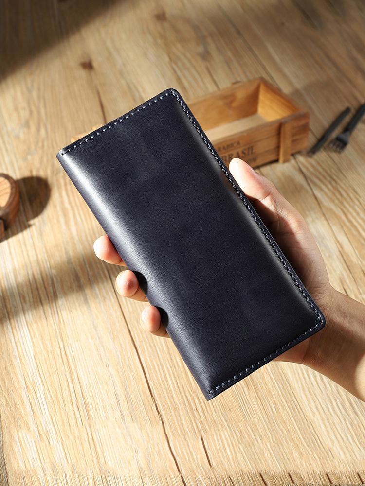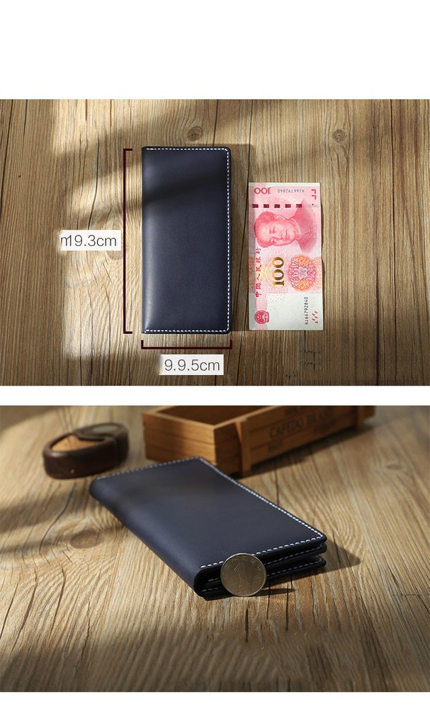 Style: Handmade Blue Mens Bifold Long Wallets Personalized Blue Leather Checkbook Wallets for Men