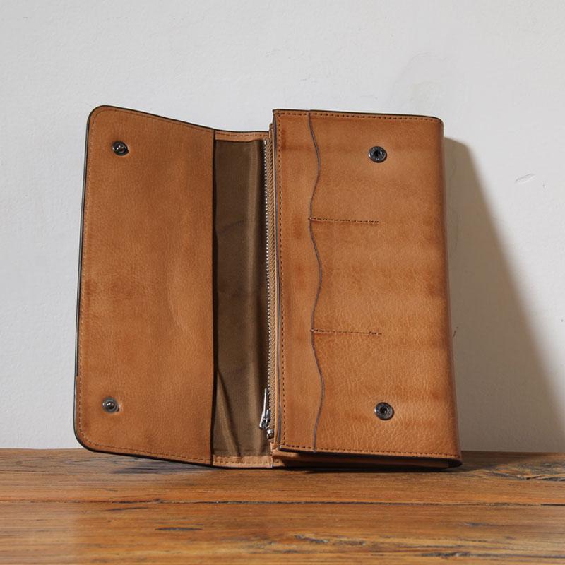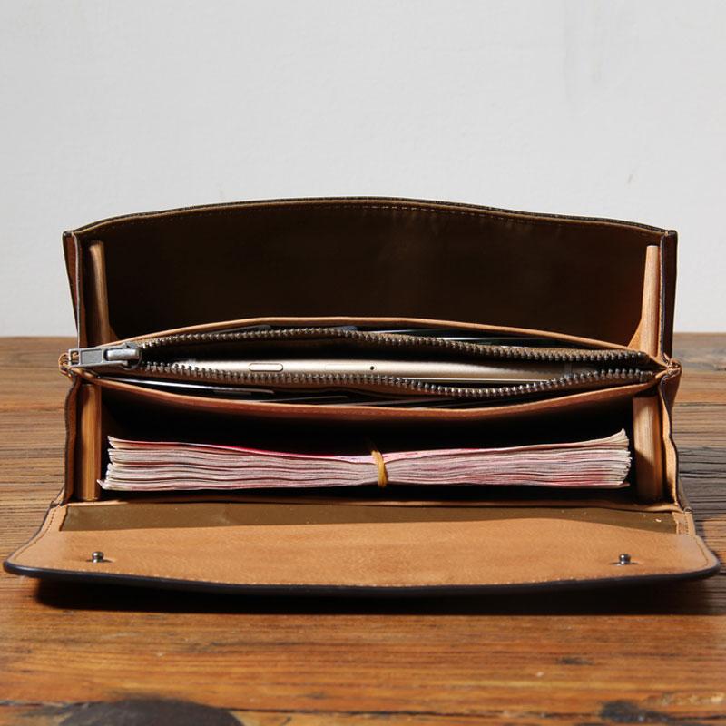 Design: Handmade Genuine Leather Mens Cool Long Leather Wallet Phone Wallet Clutch Wallet for Men