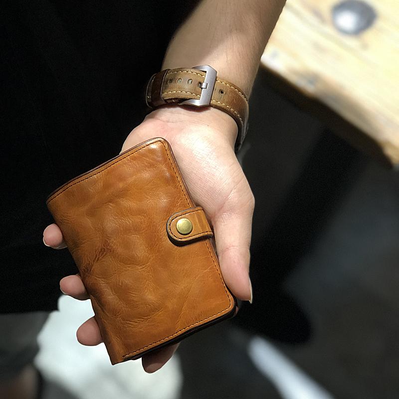 Style: Vintage Handmade Leather Mens Cool billfold Leather Wallet Men Small Wallets Bifold for Men