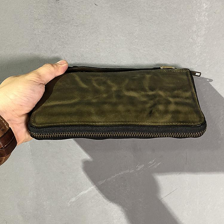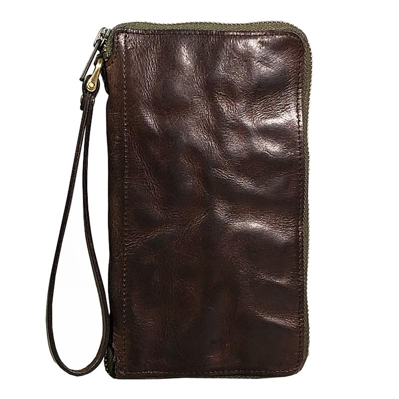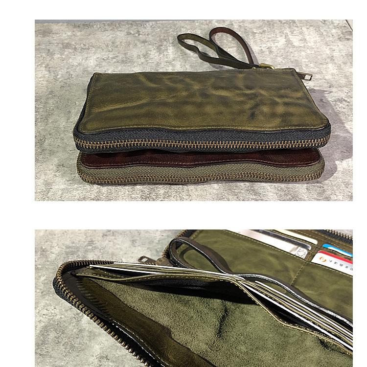 Style: Handmade Green Soft Leather Mens Long Wallet Brown Wristlet Wallet Brown Clutch Long Wallet Men