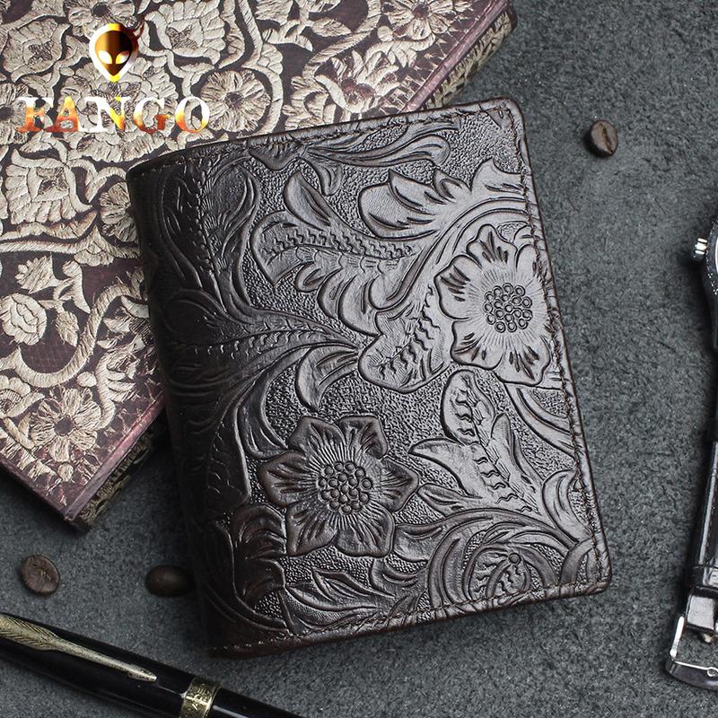 Design: Handmade Leather Floral Mens Cool Slim Leather Wallet Men billfold Wallets Bifold for Men