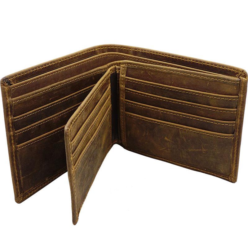 Style: Handmade Brown Leather Mens Bifold Billfold Wallets With Coin Pocket Small Wallet for Men