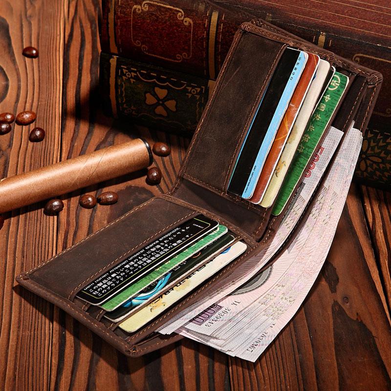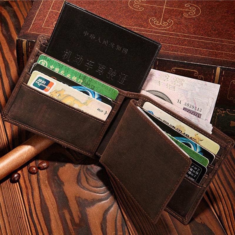 Design: Handmade Brown Leather Mens Bifold Billfold Wallets With Coin Pocket Small Wallet for Men