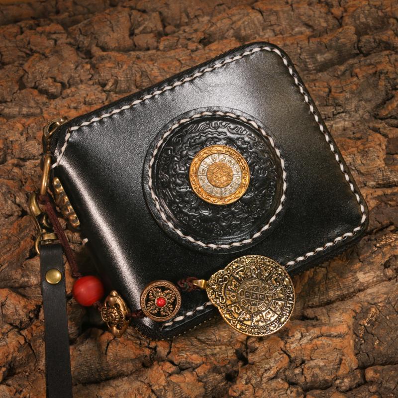 Design: Handmade Leather Mens Chain Biker Wallet Cool Leather Wallet Small Wallets for Men