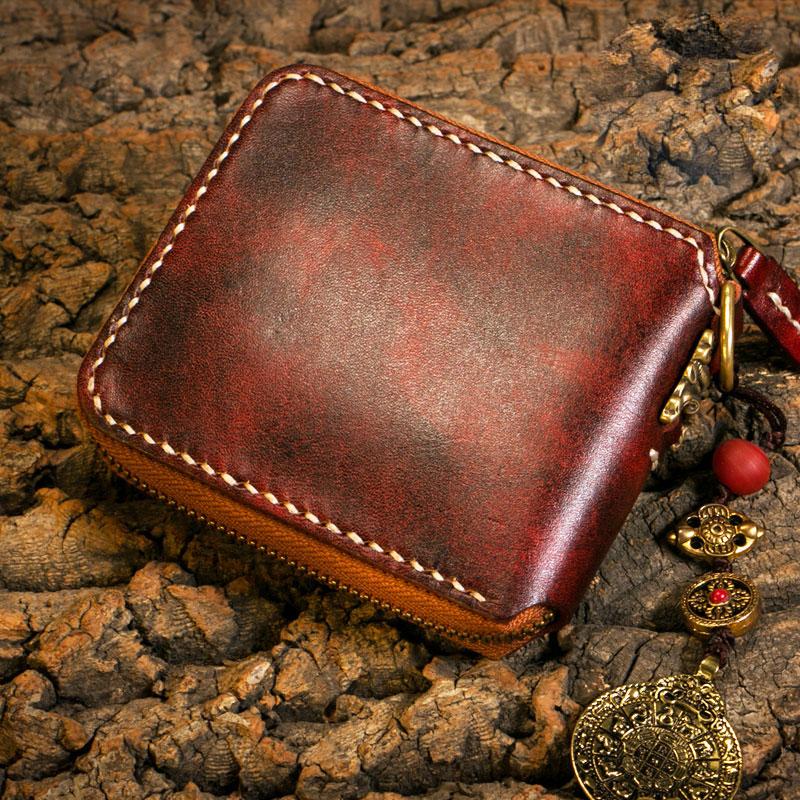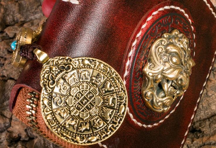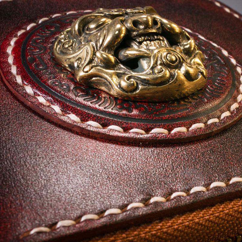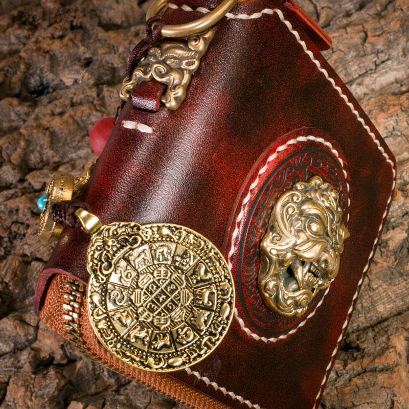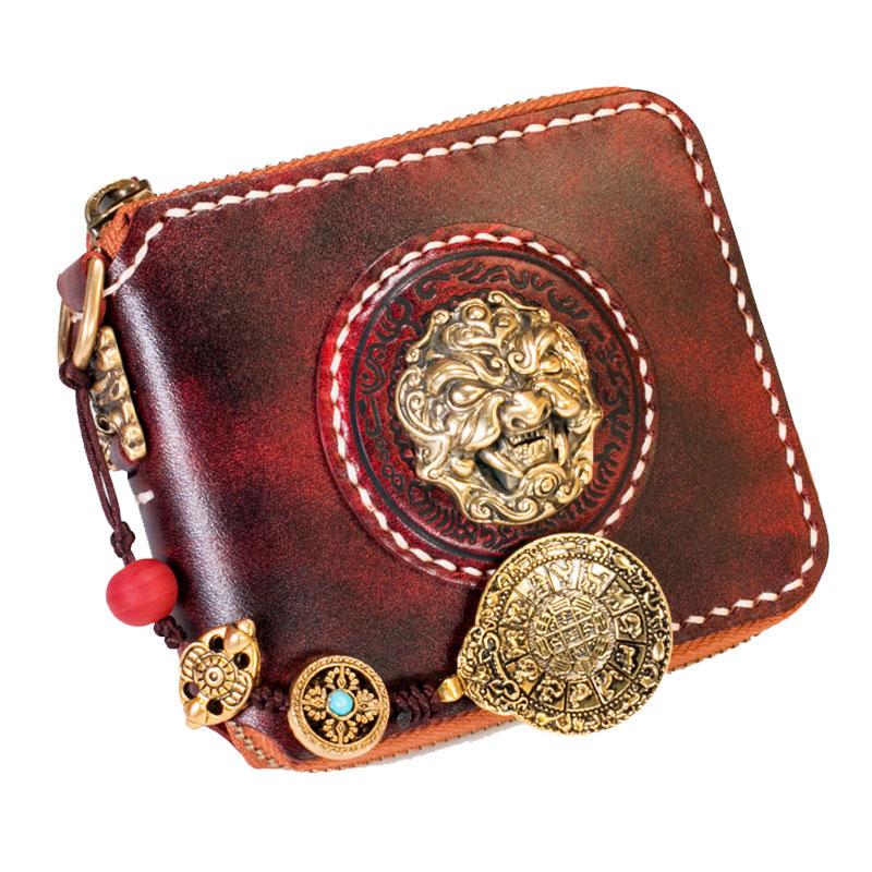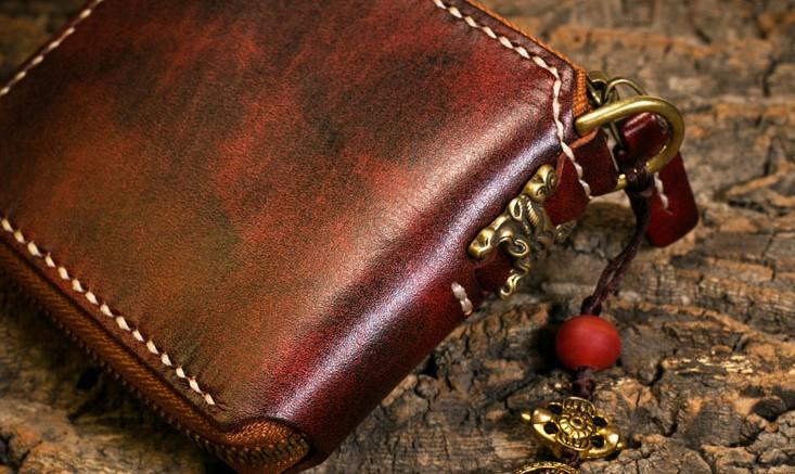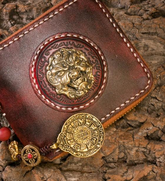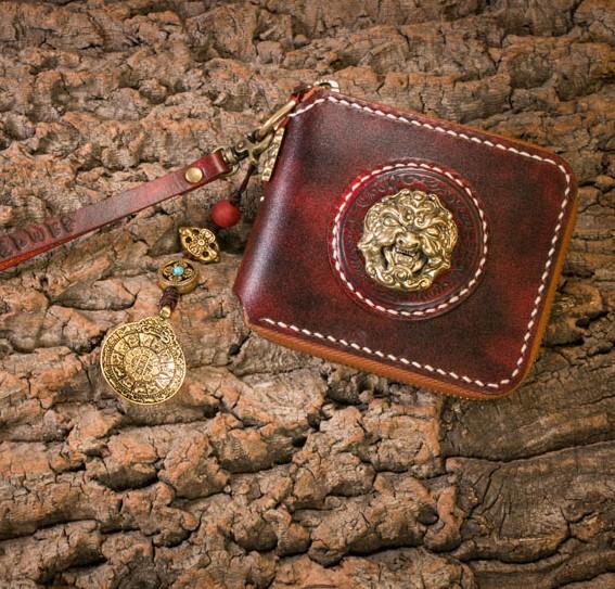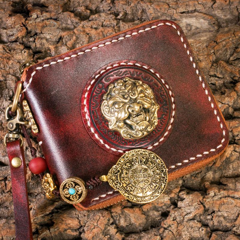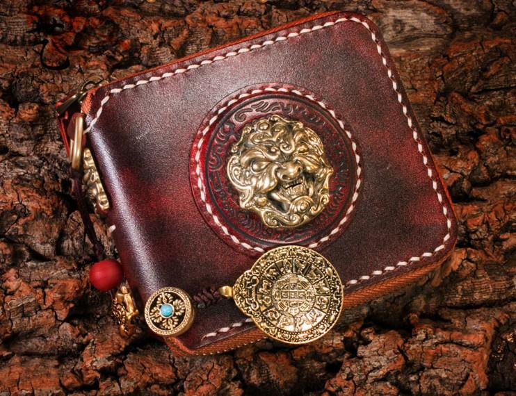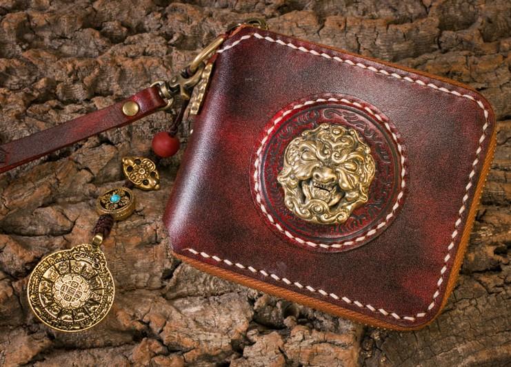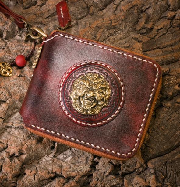 Design: Handmade Leather Mens Tooled Chain Biker Wallet Cool Leather Wallet Small Wallets for Men