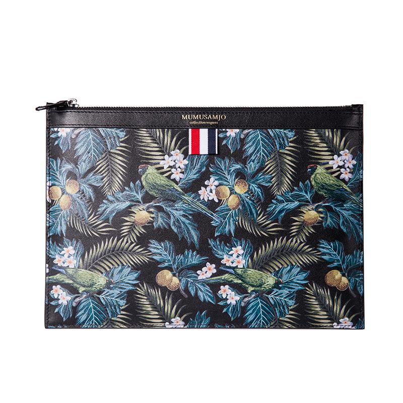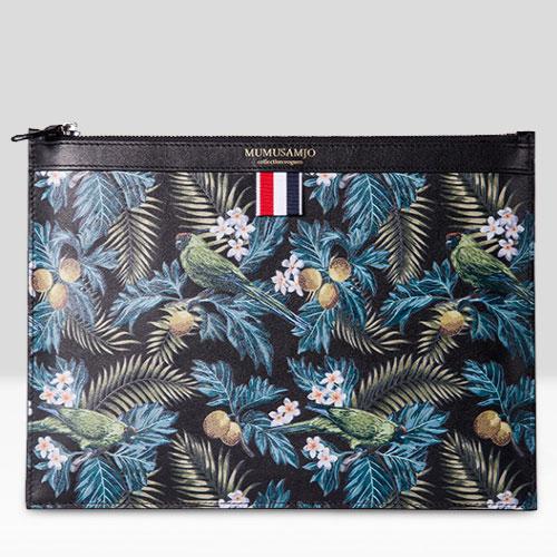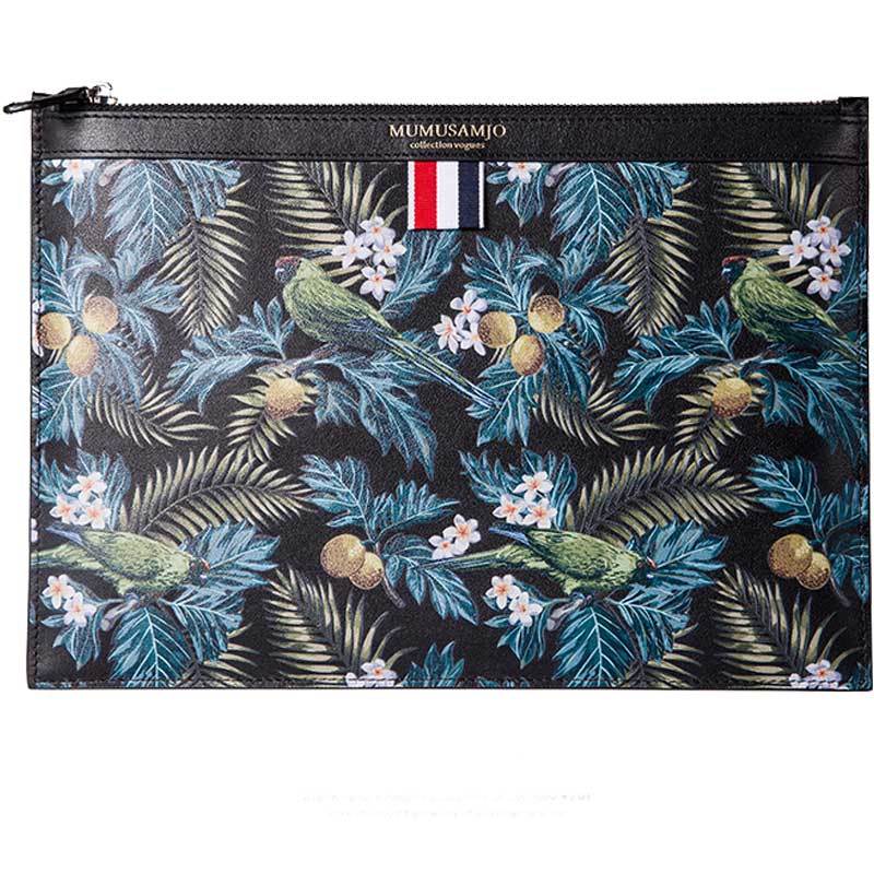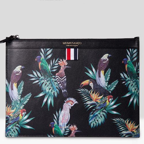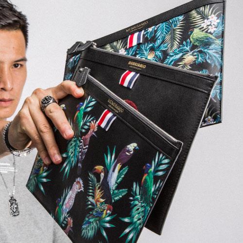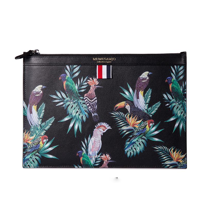 Design: Handmade Leather Mens Clutch Birds Cool Slim Wallet Zipper Clutch Wristlet Wallet for Men