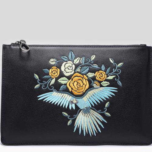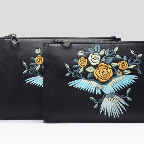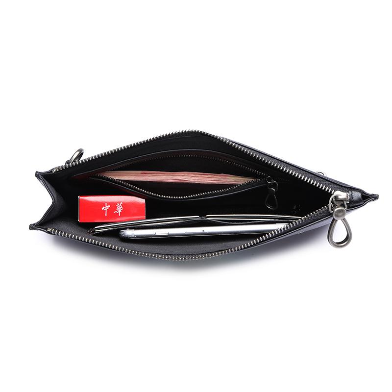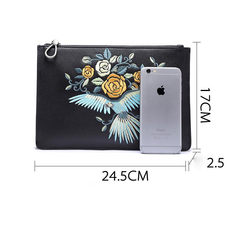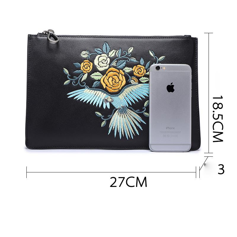 Design: Handmade Leather Mens Clutch Parrots?Cool Slim Wallet Zipper Clutch Wristlet Wallet for Men