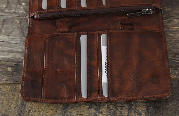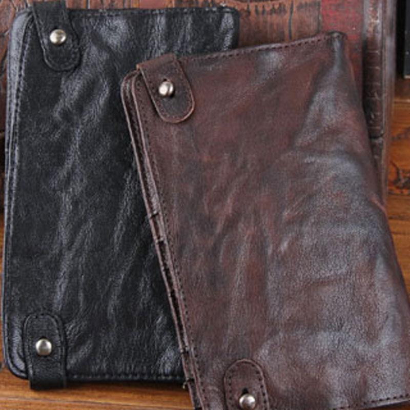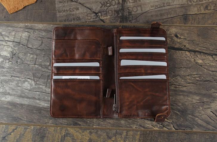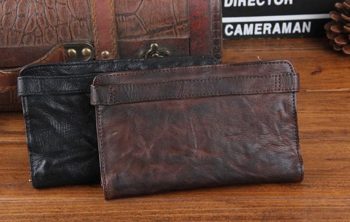 Design: Handmade Leather Mens Cool Long Leather Wallet Bifold Clutch Wallet for Men