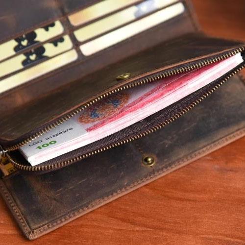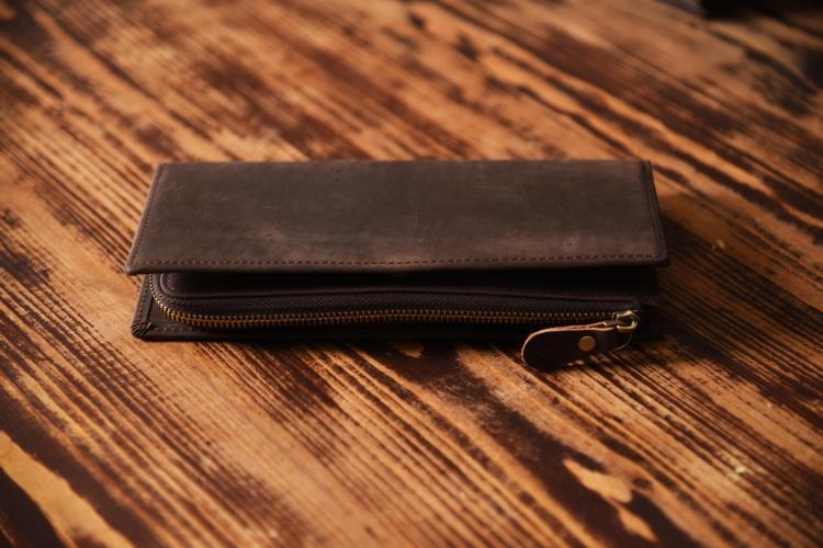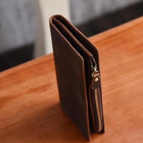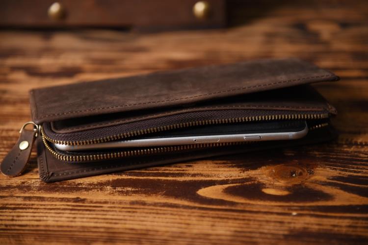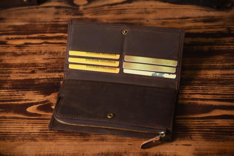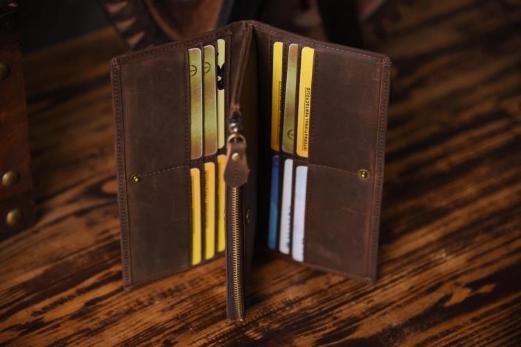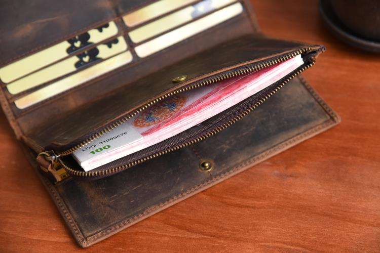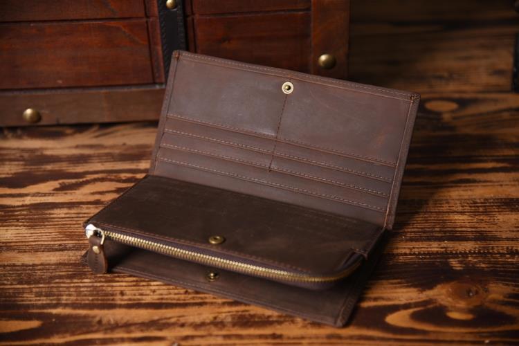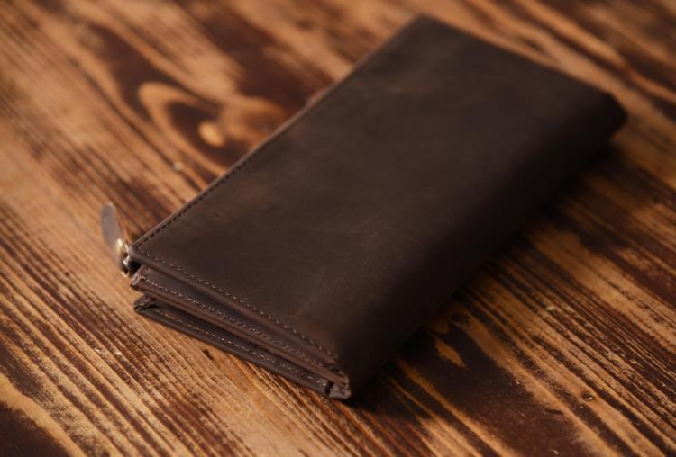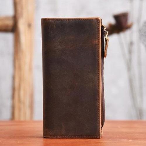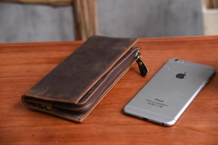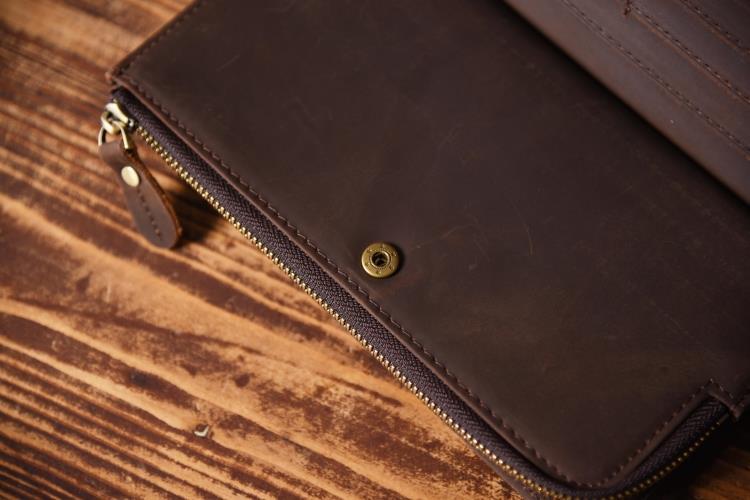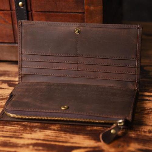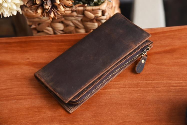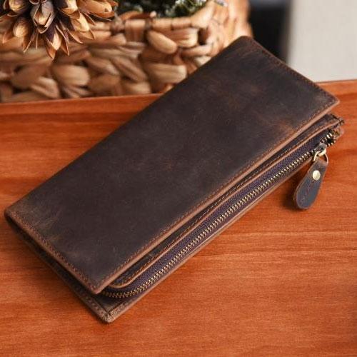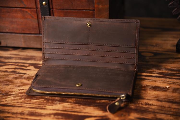 Design: Handmade Leather Mens Cool Long Leather Wallet Zipper Clutch Wallet for Men