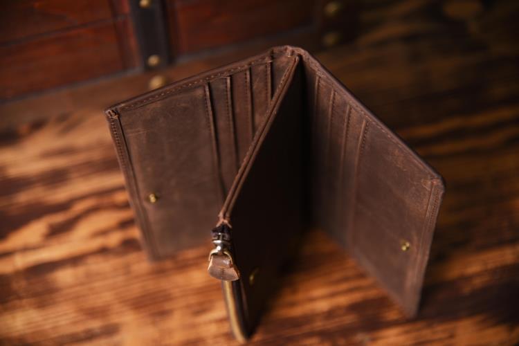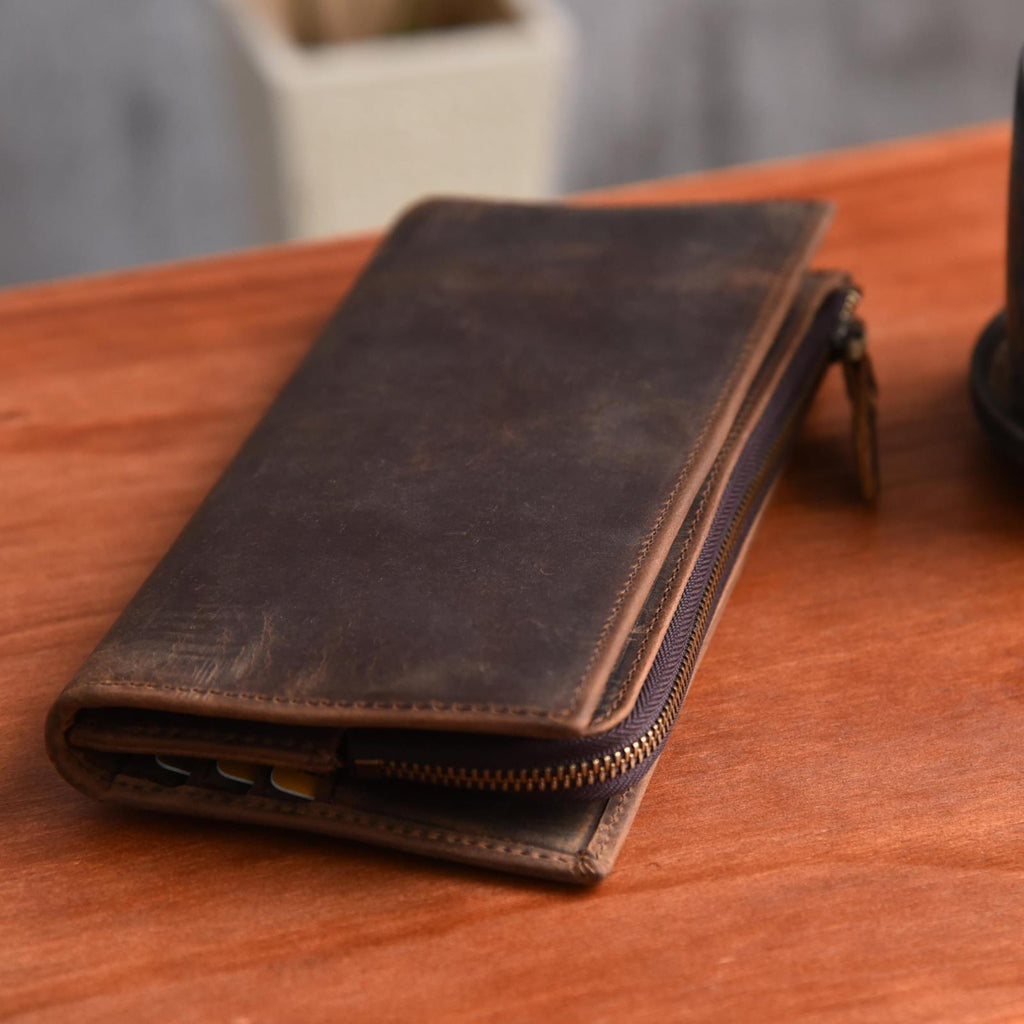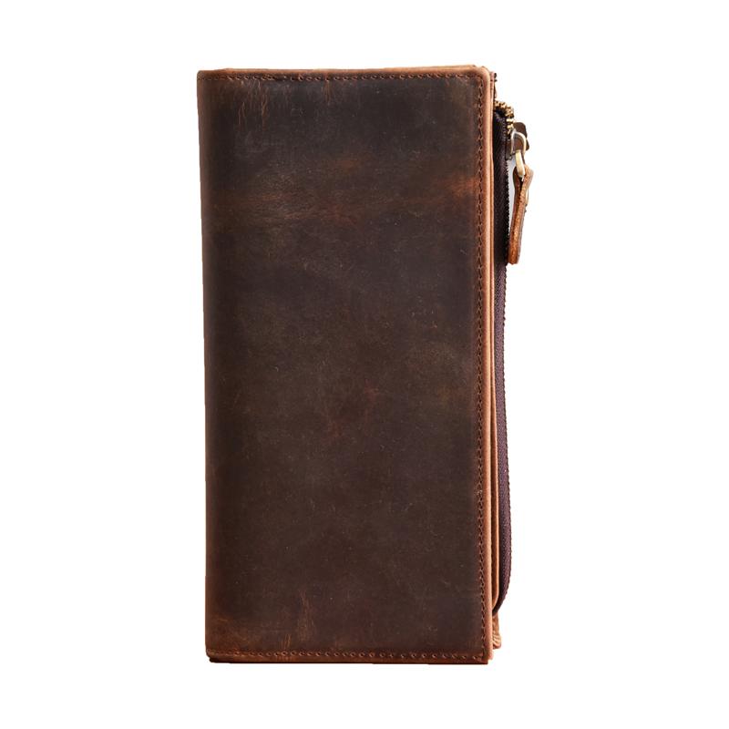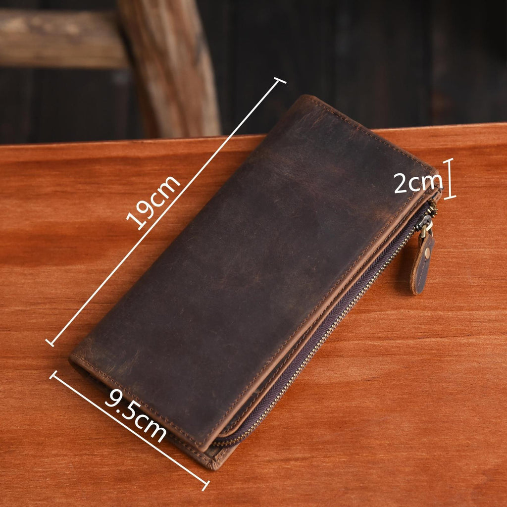 Style: Handmade Leather Mens Cool Long Leather Wallet Zipper Clutch Wallet for Men