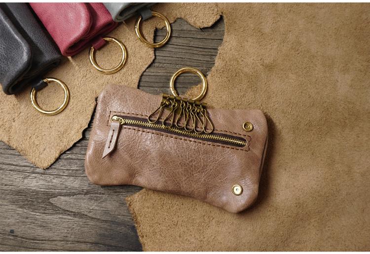 Style: Handmade Leather Mens Key Holders Coin Wallet With Keyring Key Holder Zipper Wallet for Men
