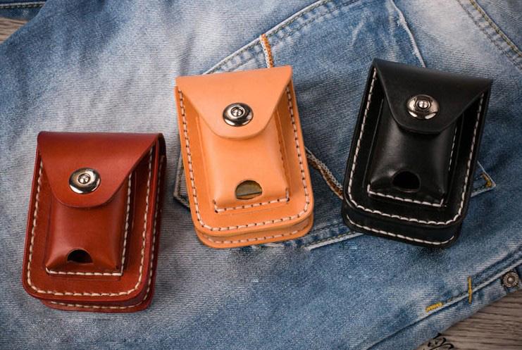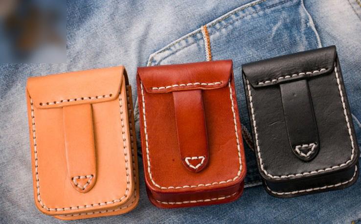 Style: Handmade Leather Mens Leather Cigarette Case Cigarette Box Lighter Pocket Tobacco Pouch