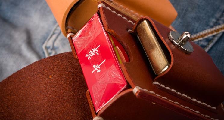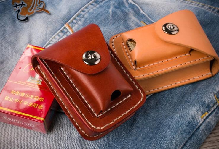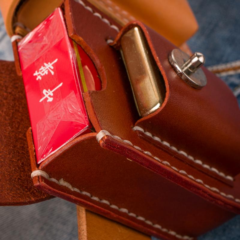 Design: Handmade Leather Mens Leather Cigarette Case Cigarette Box Lighter Pocket Tobacco Pouch