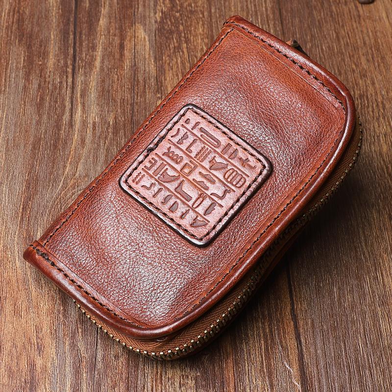 Style: Handmade Leather Mens Multi-function Brown Cool Black Long Leather Wallet Bifold Clutch Wallet for Men