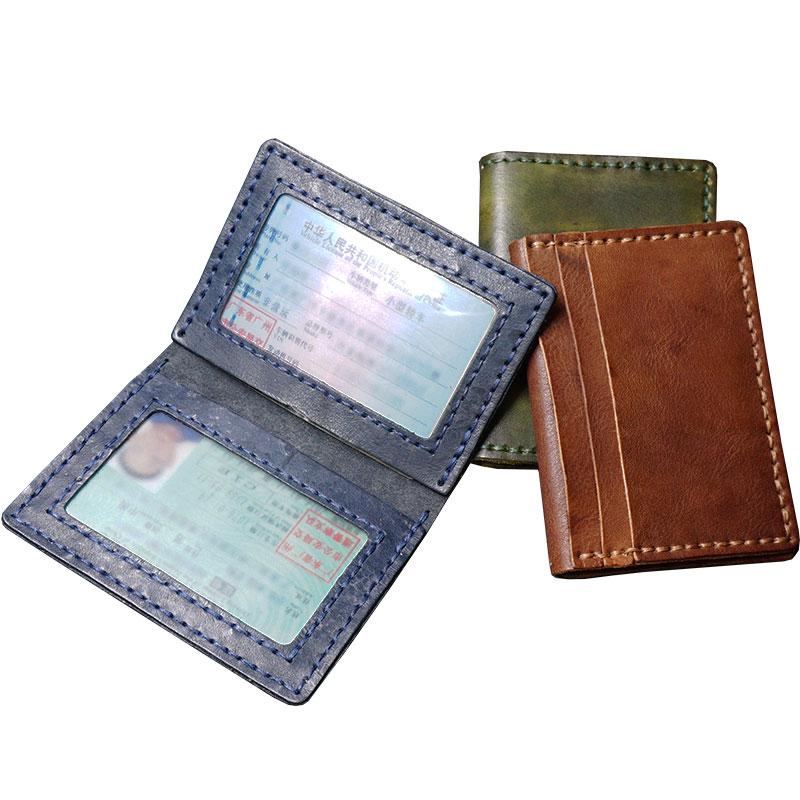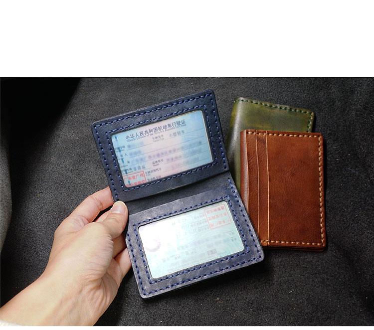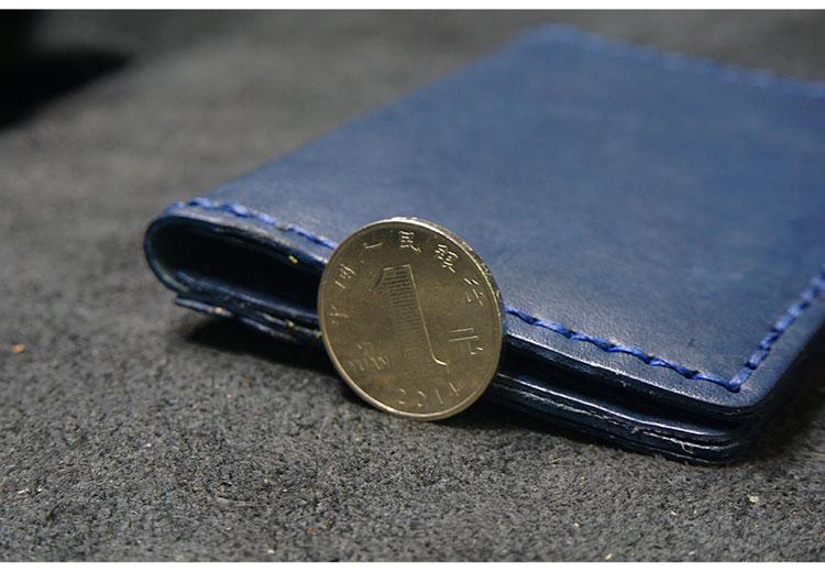 Design: Handmade Blue Leather Mens Slim Card Holders Wallets Slim Bifold Card Wallet for Men