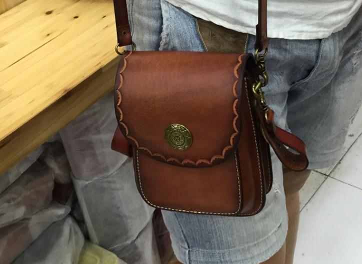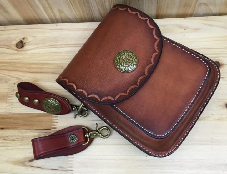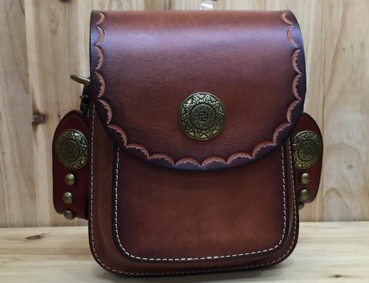 Design: Handmade Leather Carp Mens Messenger Bag Waist Bag Hip Pack Belt Bag Fanny Pack Bumbag for Men
