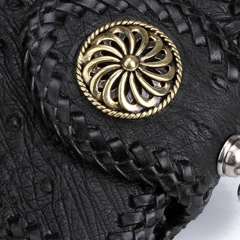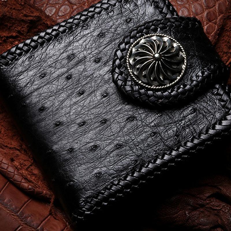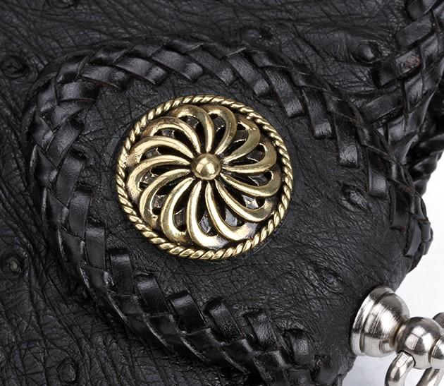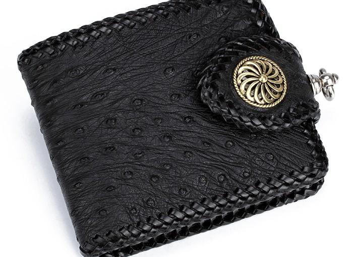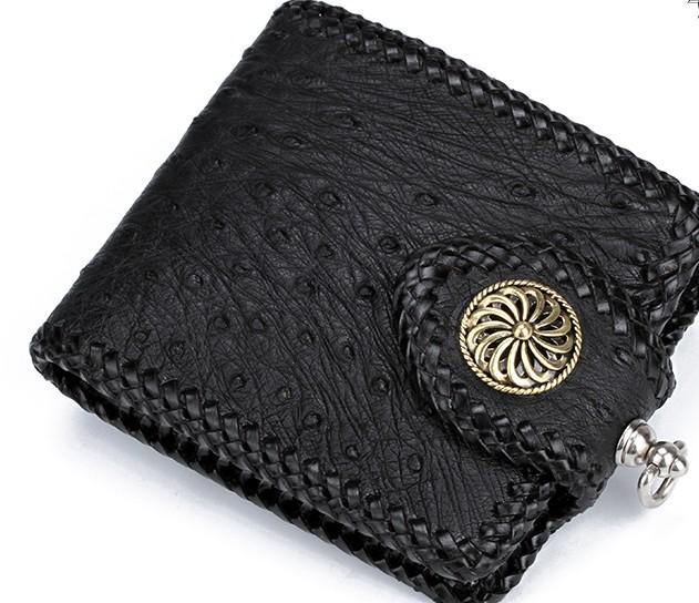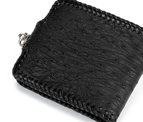 Style: Handmade Leather Ostrich skin Mens billfold Wallet Cool Chain Wallet Biker Wallet for Men