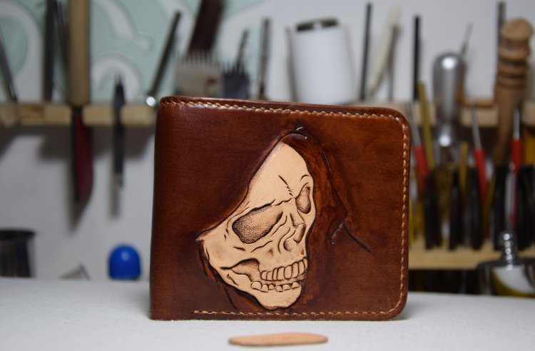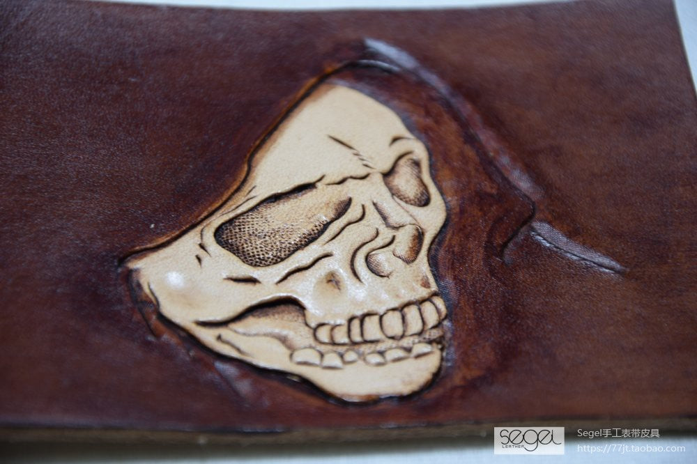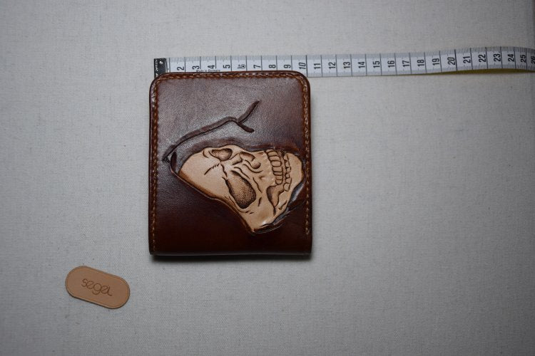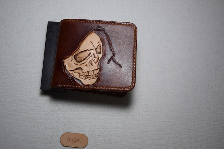 Style: Handmade Leather Skull Death Tooled Mens billfold Wallet Cool Leather Wallet Slim Wallet for Men