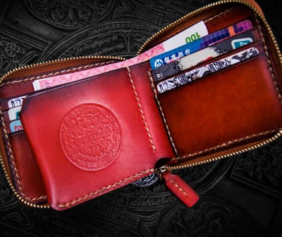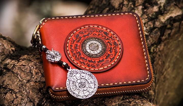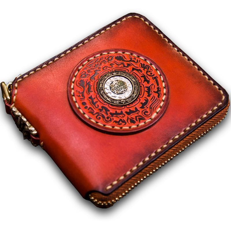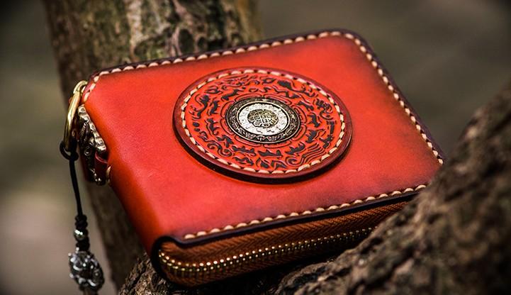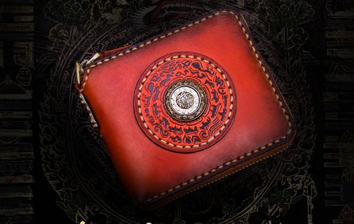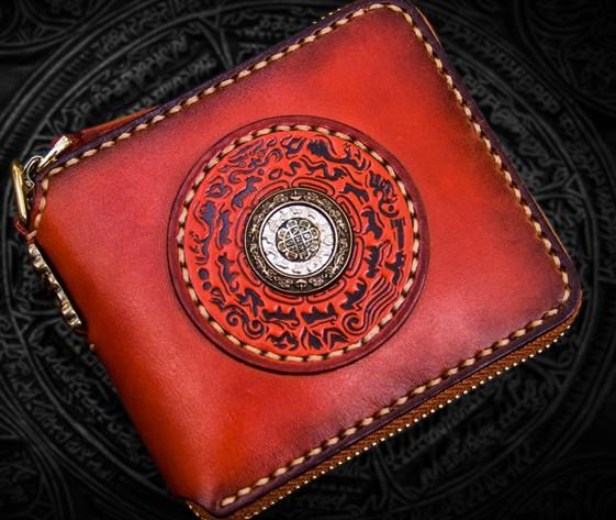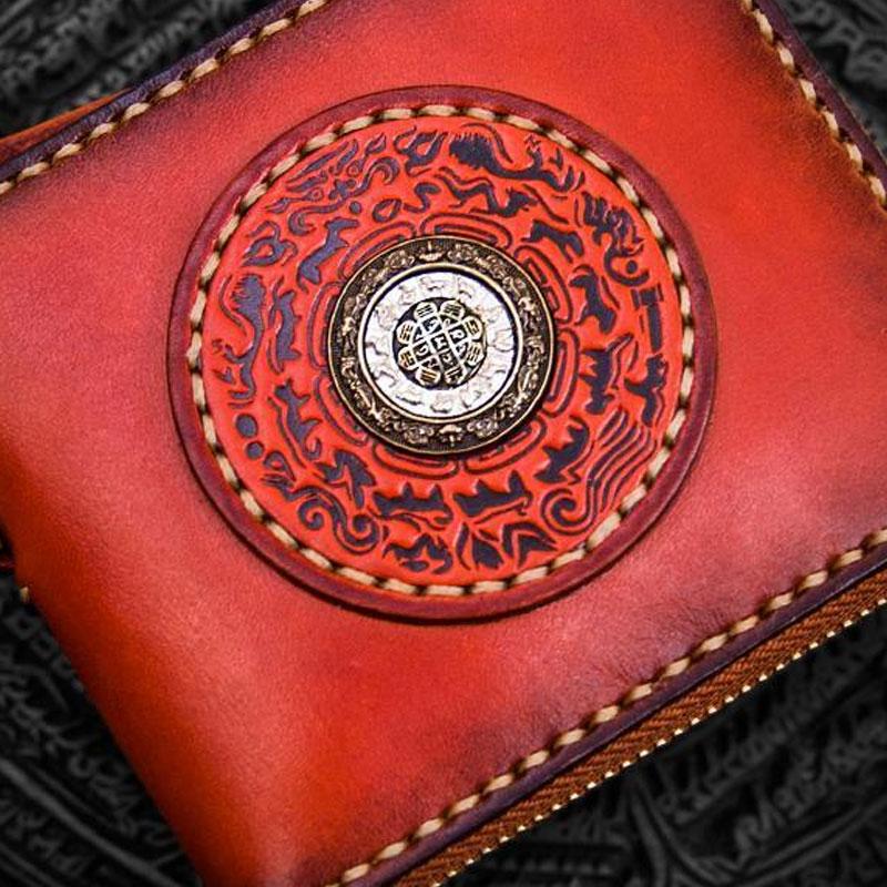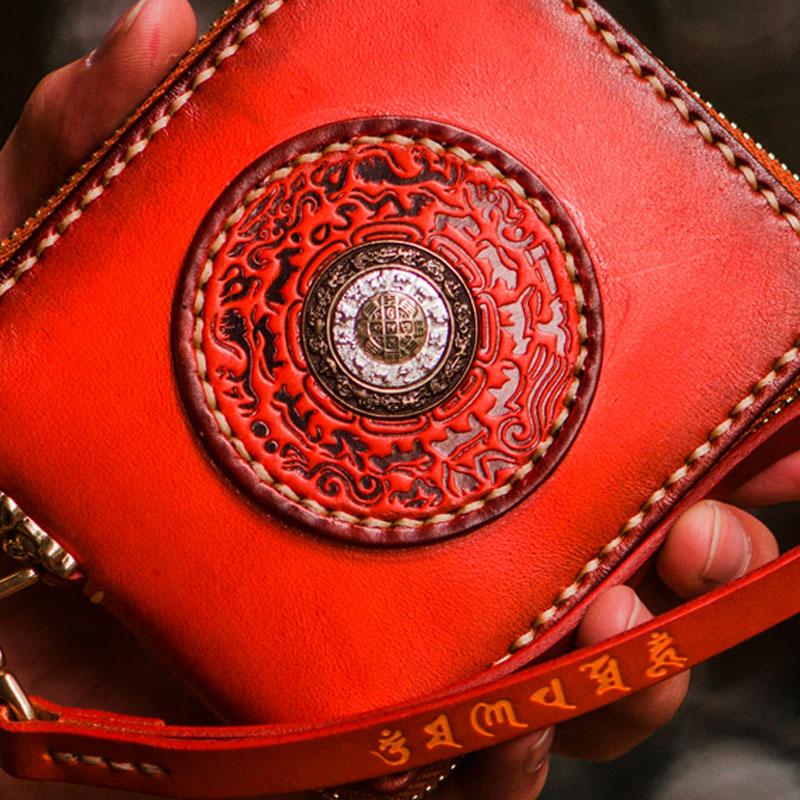 Design: Handmade Leather Small Tibetan Tooled Mens billfold Wallet Cool Chain Wallet Biker Wallet for Men