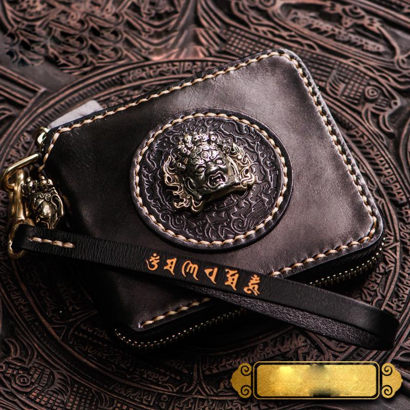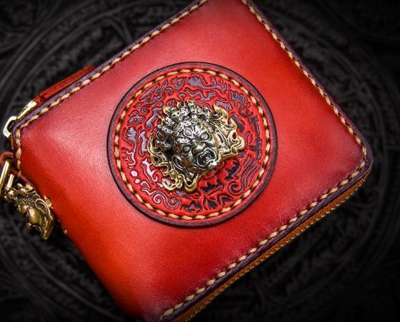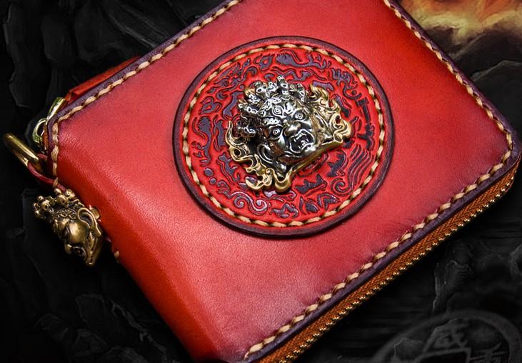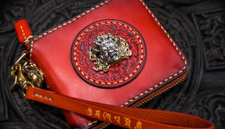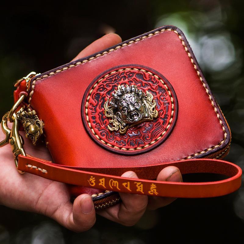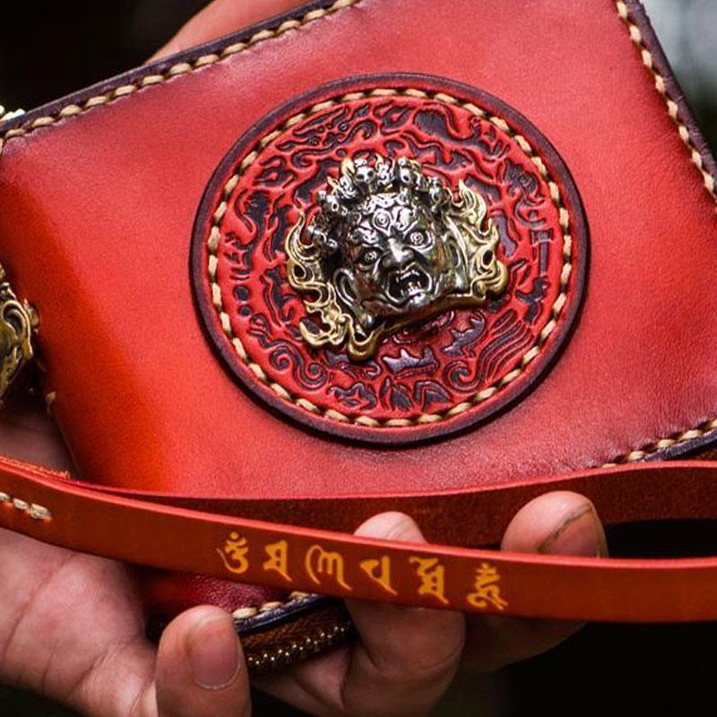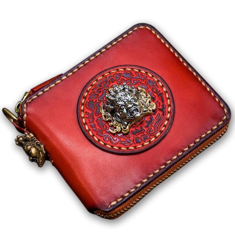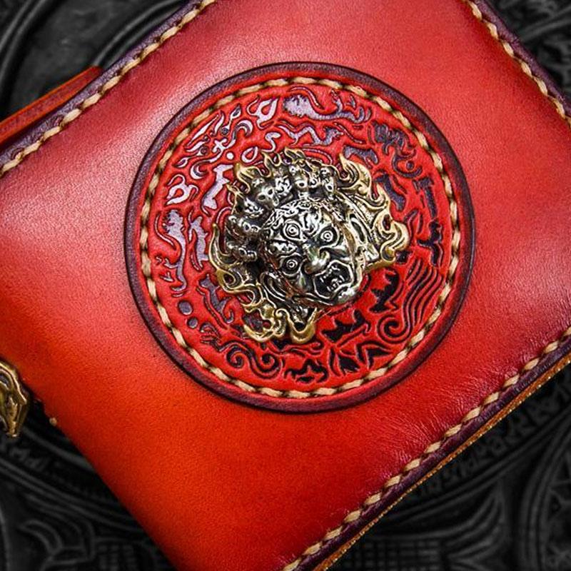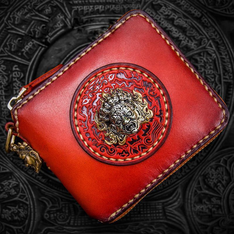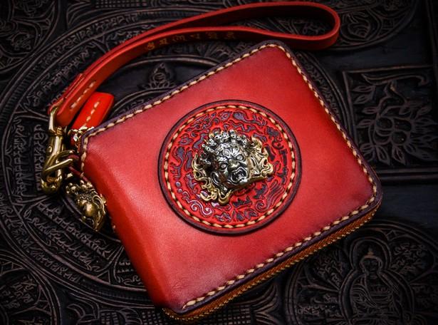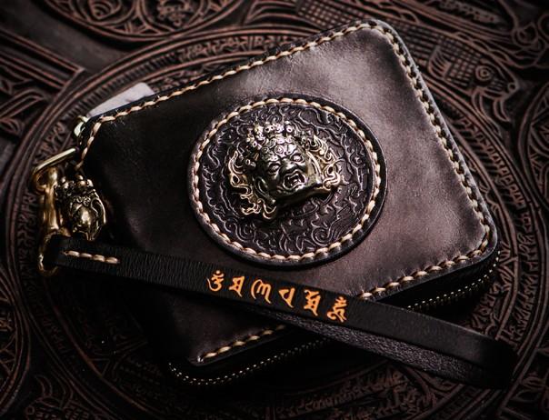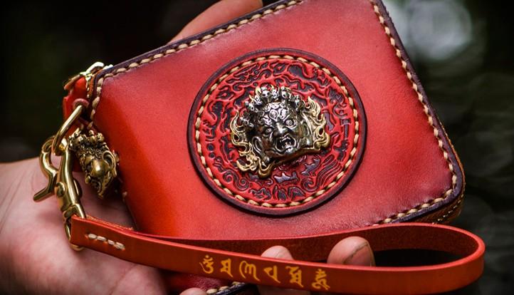 Design: Handmade Leather Small Tooled Mens billfold Wallet Cool Chain Wallet Biker Wallet for Men