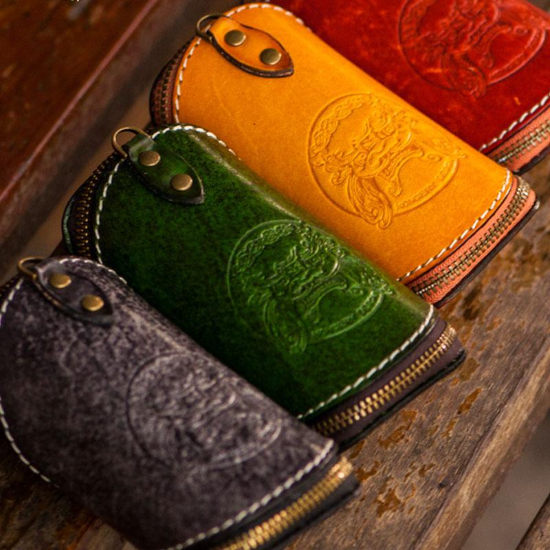 Style: Handmade Leather Tooled Mens Cool Car Key Wallet Coin Wallet Pouch Car KeyChain for Men