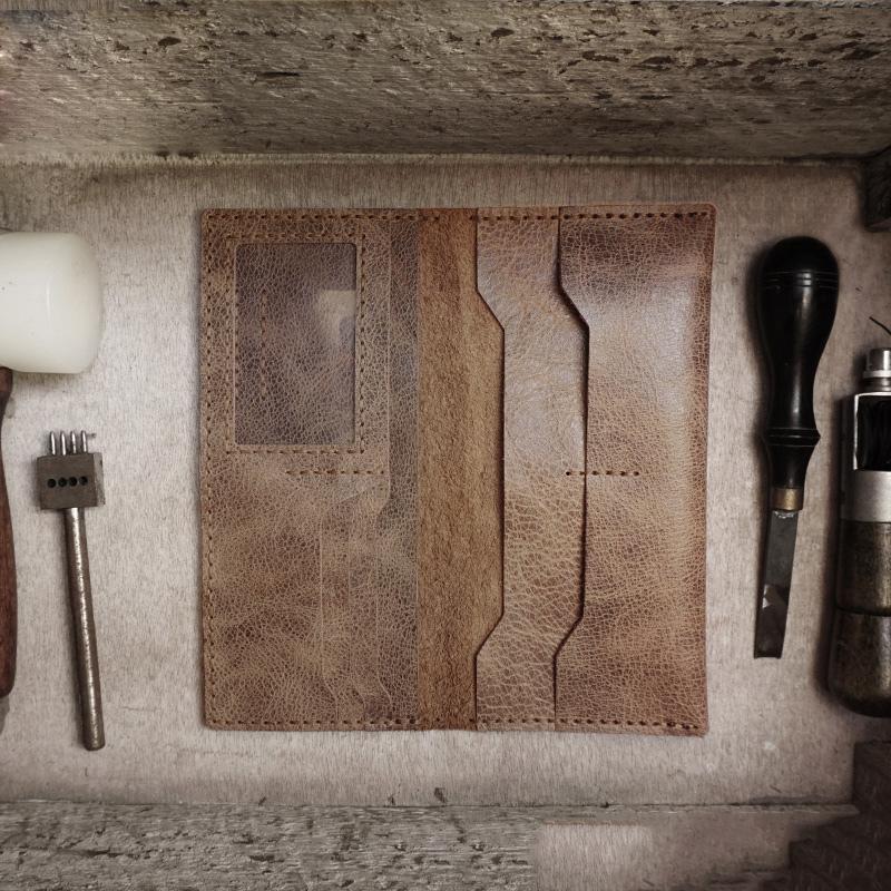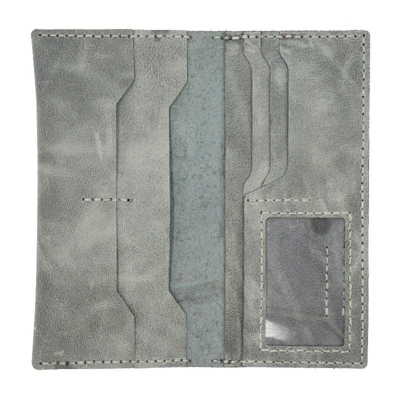 Design: Handmade Slim Checkbook Wallet Leather Mens Bifold Long Wallet Lots Cards Long Wallet for Men