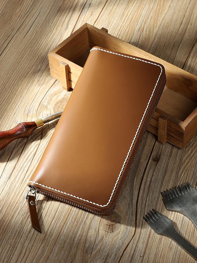 Handmade Tan Mens Zipper Long Wallets Personalized Leather Around Zipper Wallets for Men