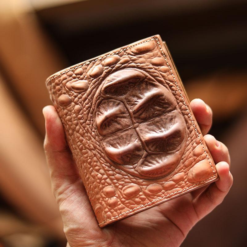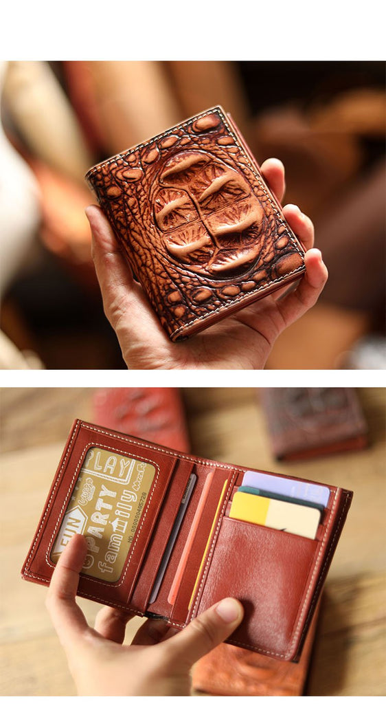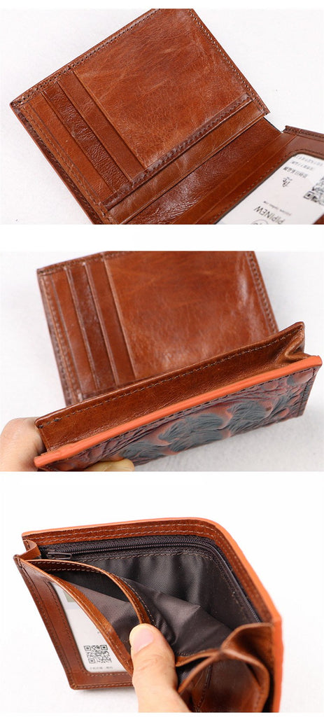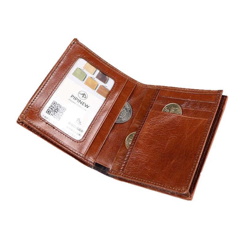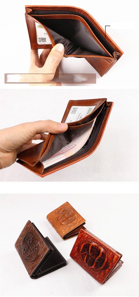 Style: Handmade Vertical Dark Brown Leather Mens billfold Wallet Zipper Small Wallet Front Pocket Wallet For Men