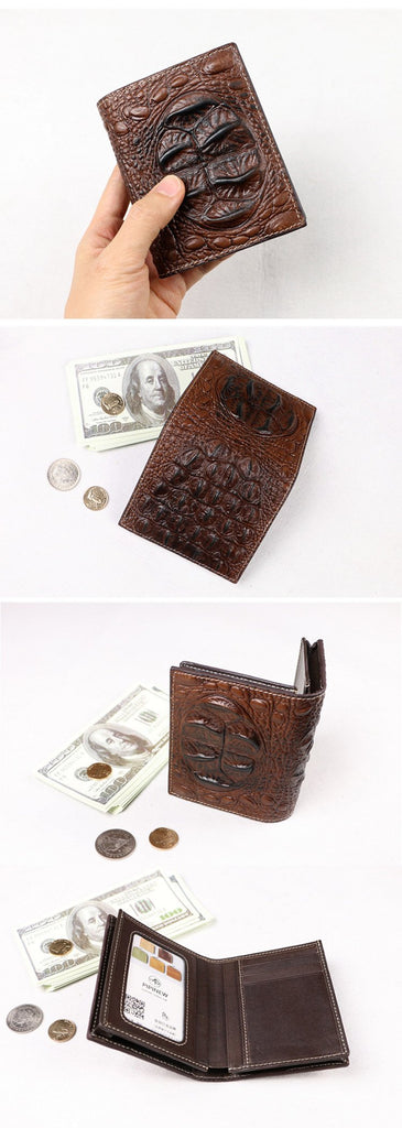 Design: Handmade Vertical Dark Brown Leather Mens billfold Wallet Zipper Small Wallet Front Pocket Wallet For Men