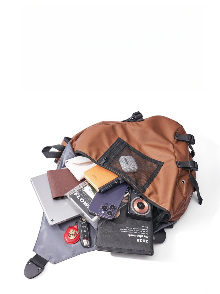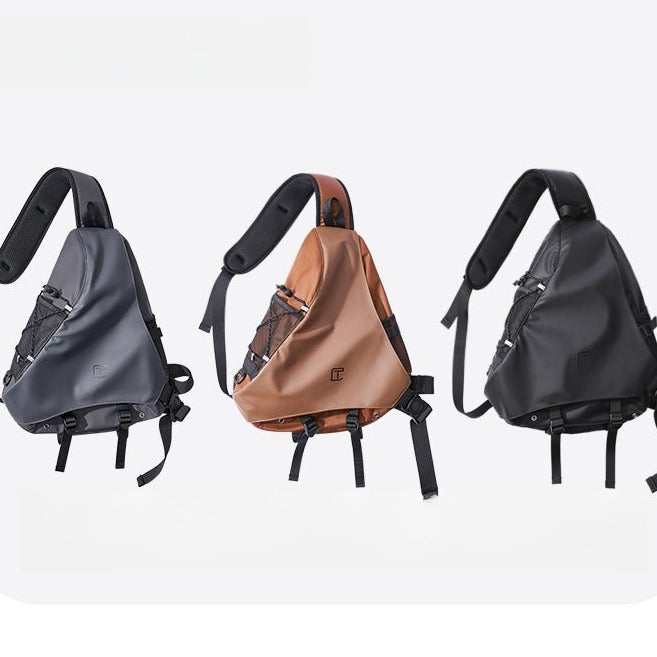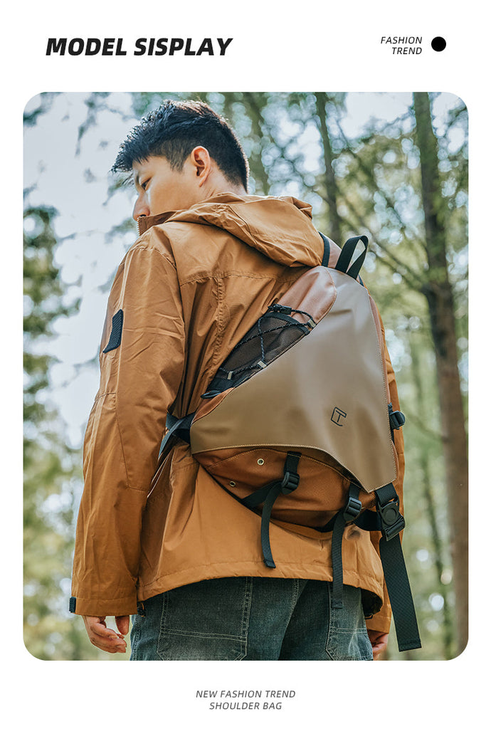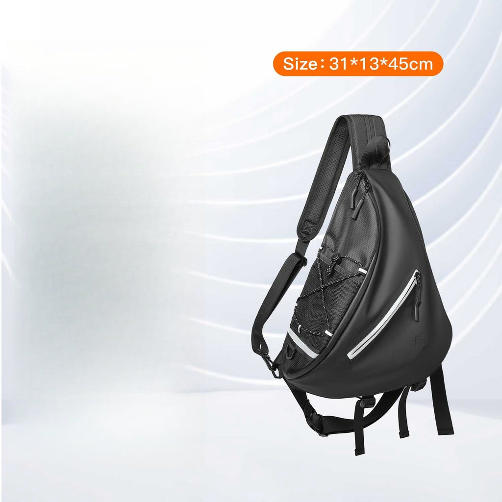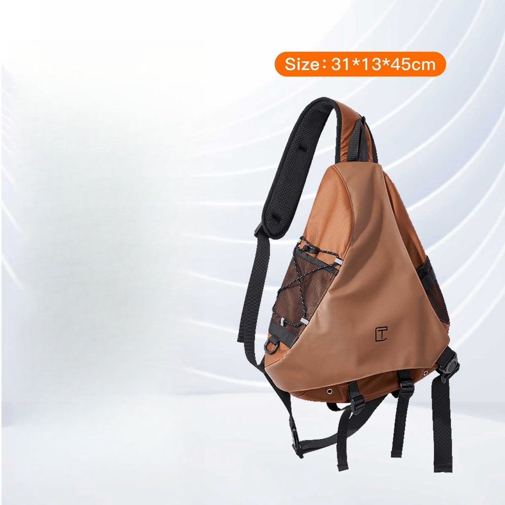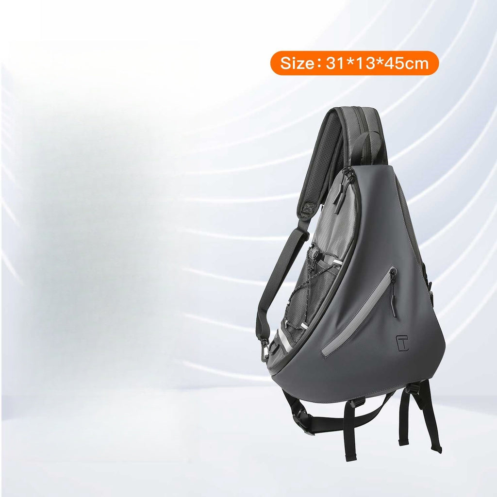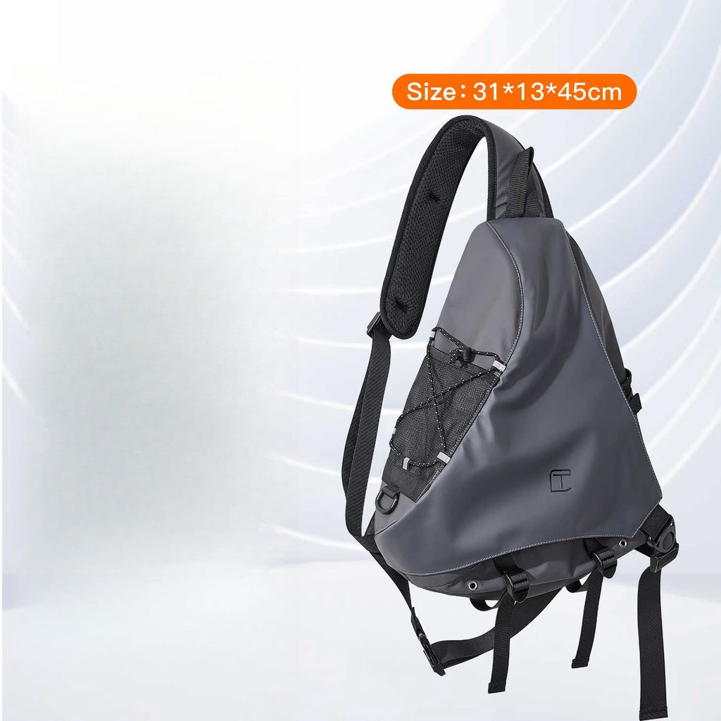 This stylish sling bag combines a unique appearance with a fashionable style, making it an eye-catching accessory for a variety of activities. Measuring 45cm x 31cm x 13cm, this bag offers ample space to carry all your essentials while maintaining a sleek and modern look. It is crafted from a combination of durable Oxford fabric and fake leather, providing both durability and a sophisticated finish. Additionally, the bag is waterproof, ensuring your belongings stay dry in any weather.